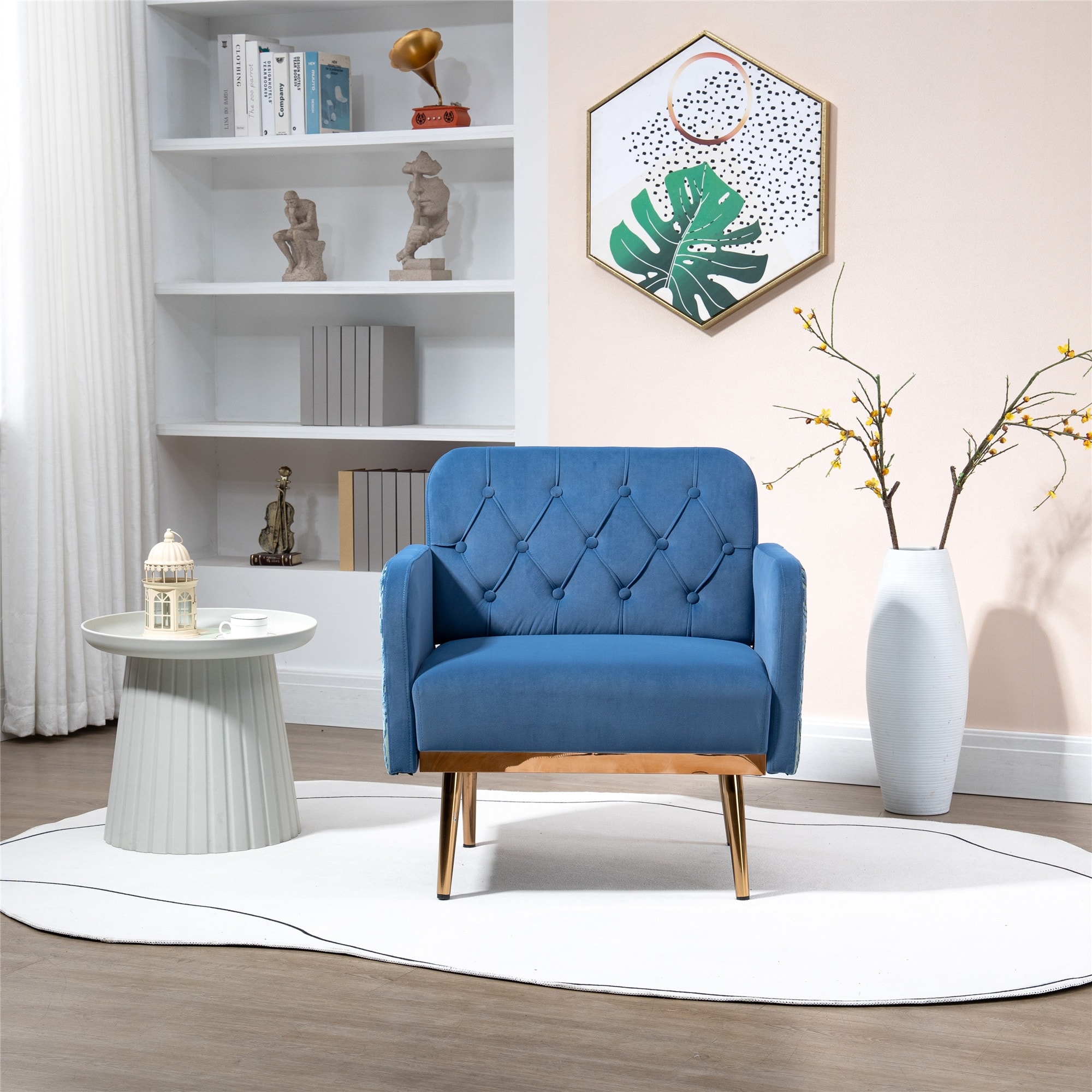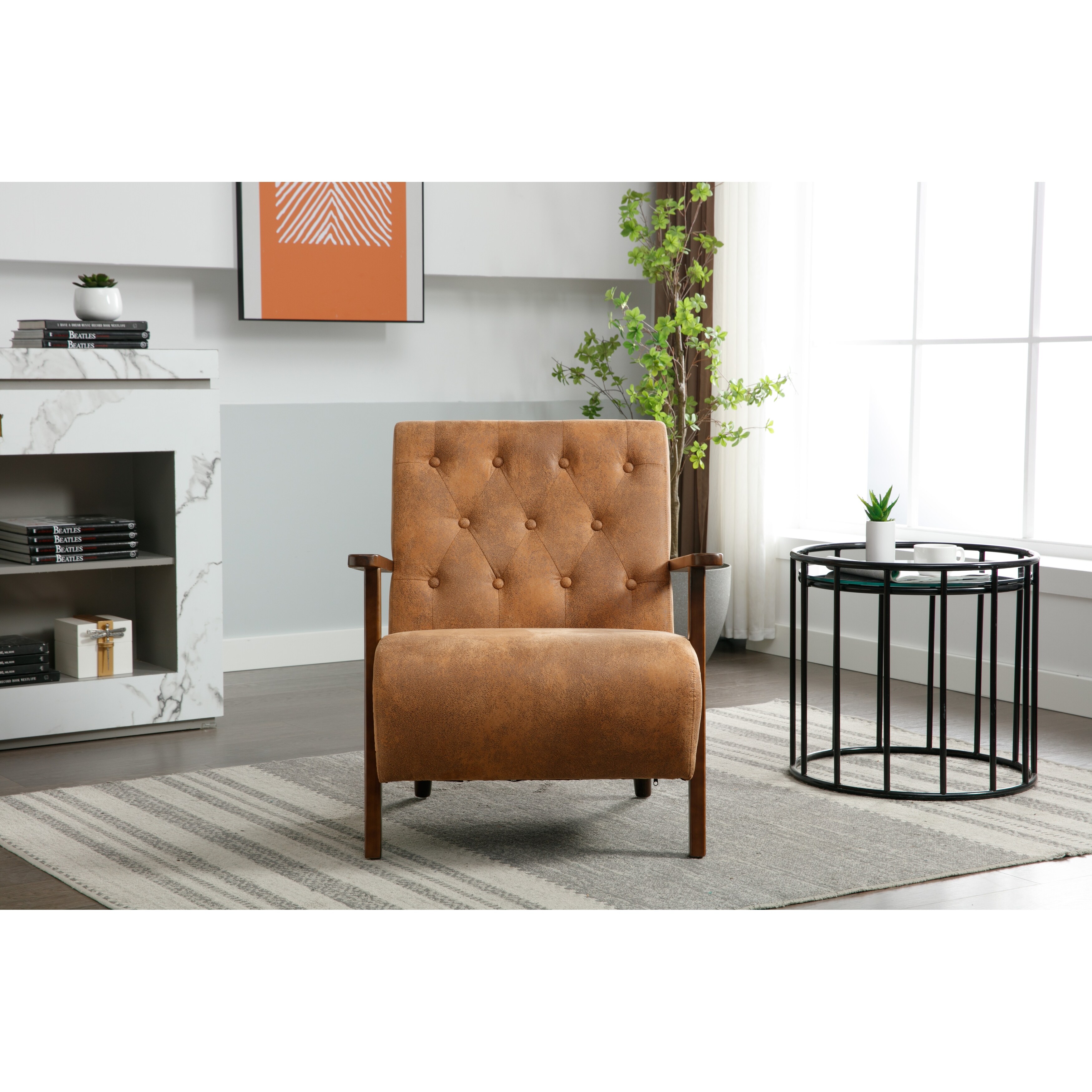 HOMEFUN Wood Frame Tufted Modern Armchair for Living Room