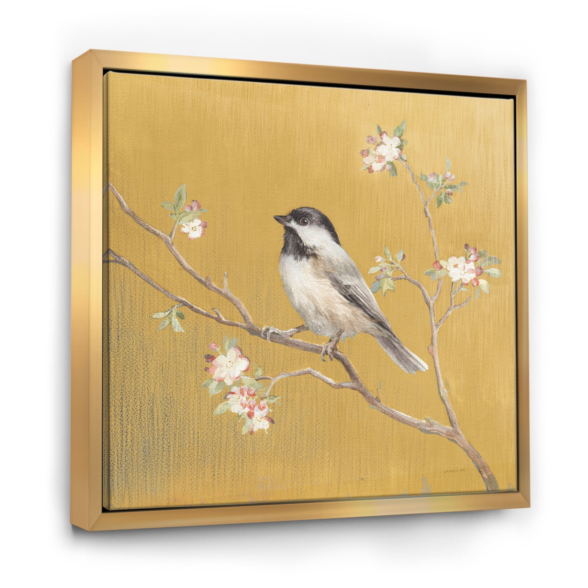 Designart "Gold Bird on Blossoms IV" Farmhouse Framed Canvas