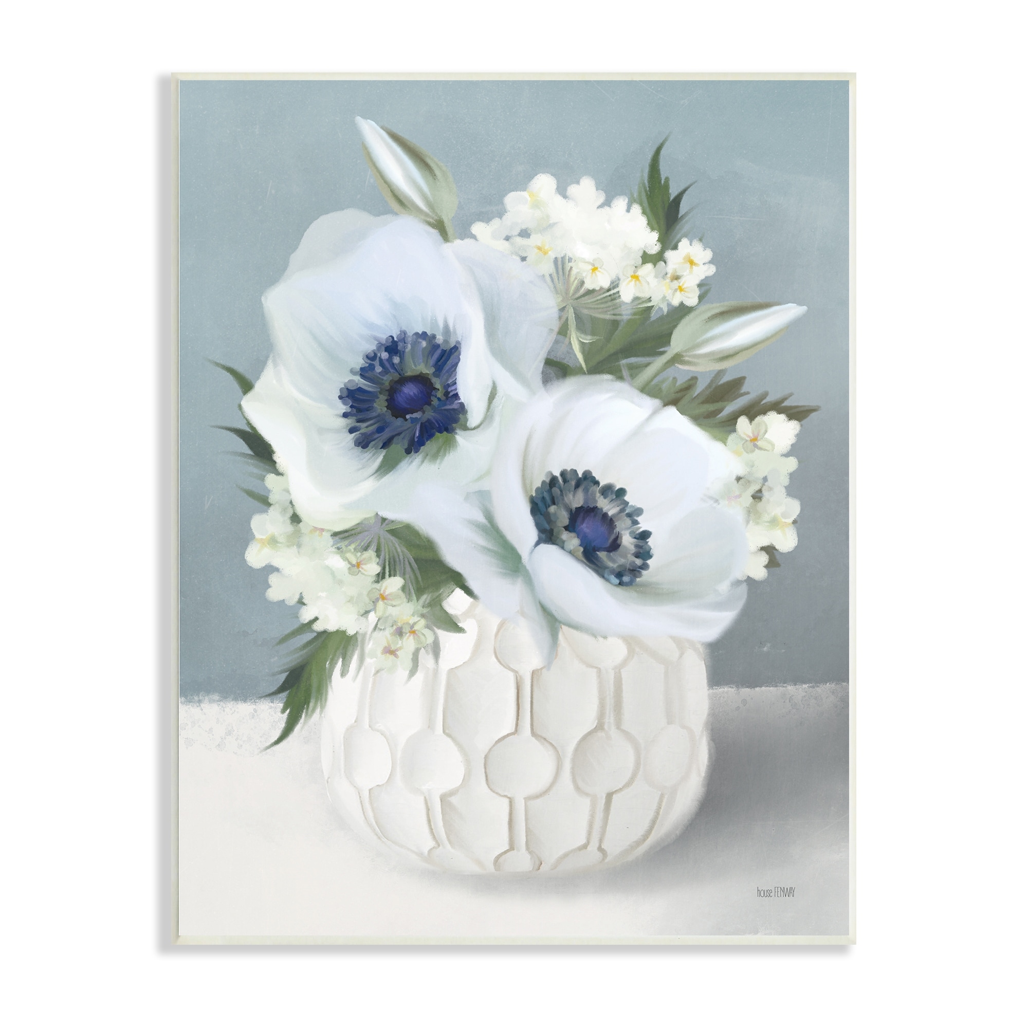 Stupell White Poppies Small Orchids Flower Geometric Vase Wood Wall Art - Grey