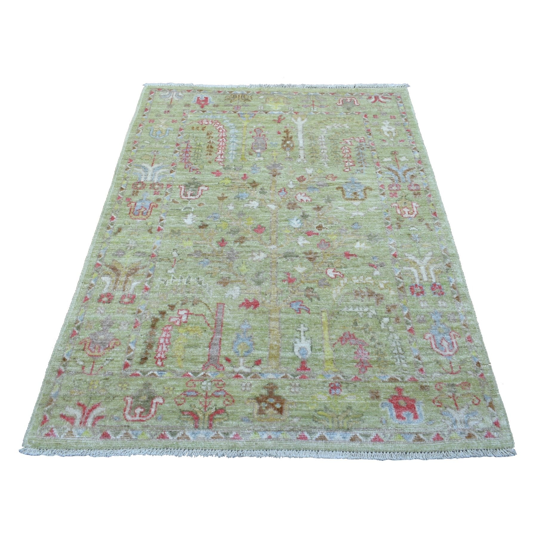 Hand Knotted Green Oushak And Peshawar with Wool Oriental Rug (4'1" x 5'9") - 4'1" x 5'9"