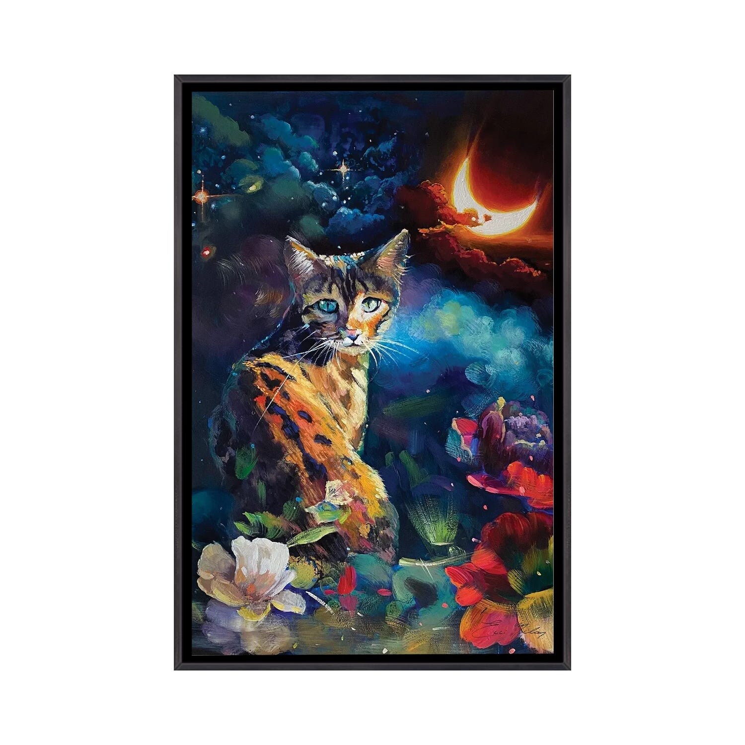 iCanvas "Digital Sunset - Cat" by Kubistika Framed