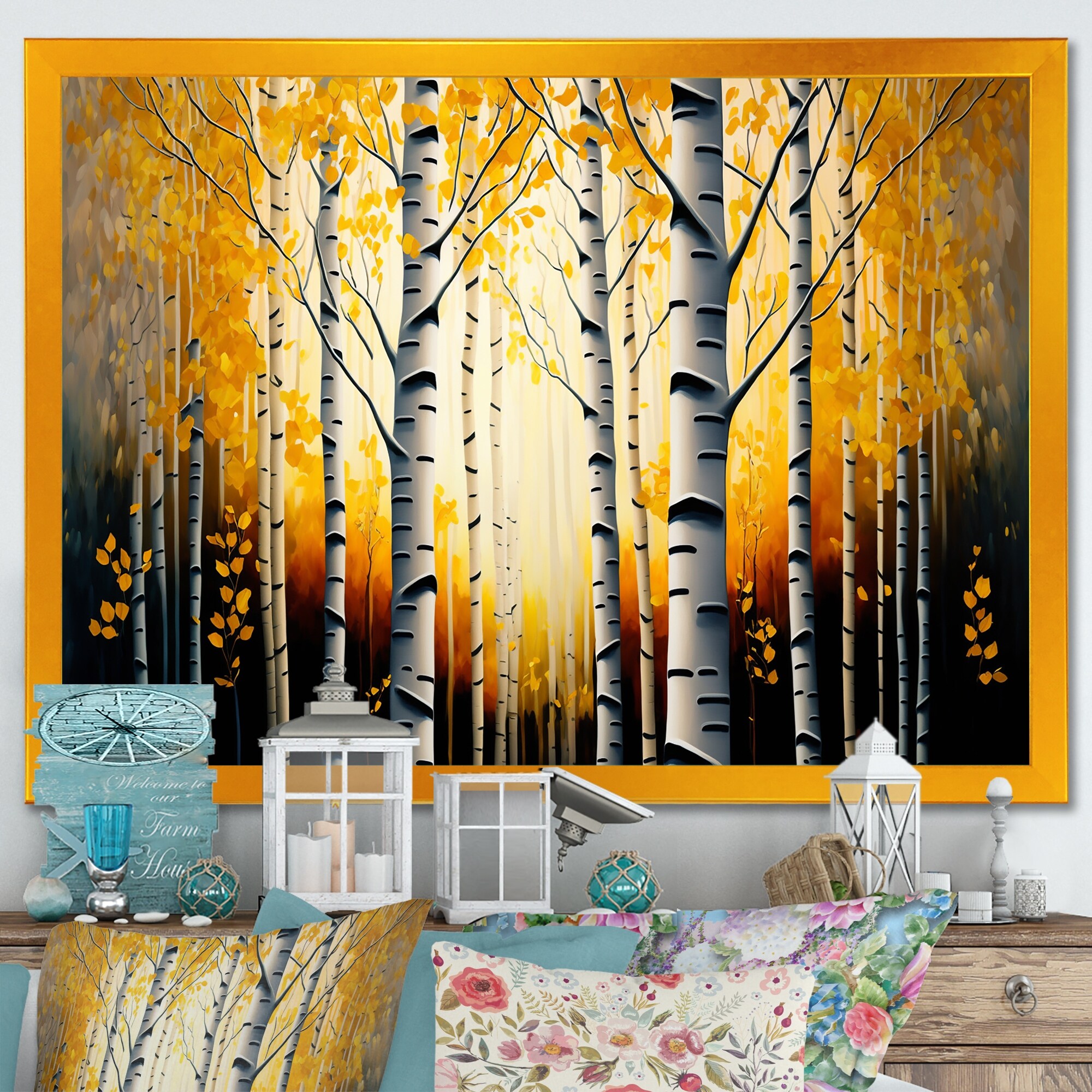 Designart "Into A Golden Birch Forest II" Landscape Framed Art Print