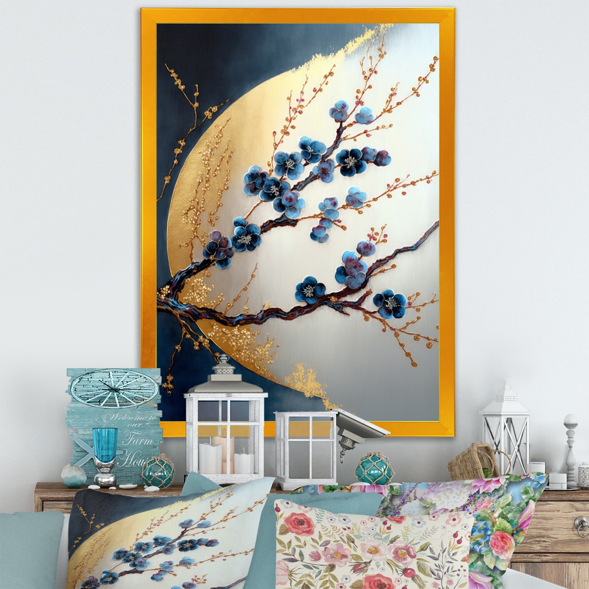 Designart "Blue Cherry Blossom Branch IV" Modern Framed Art Print