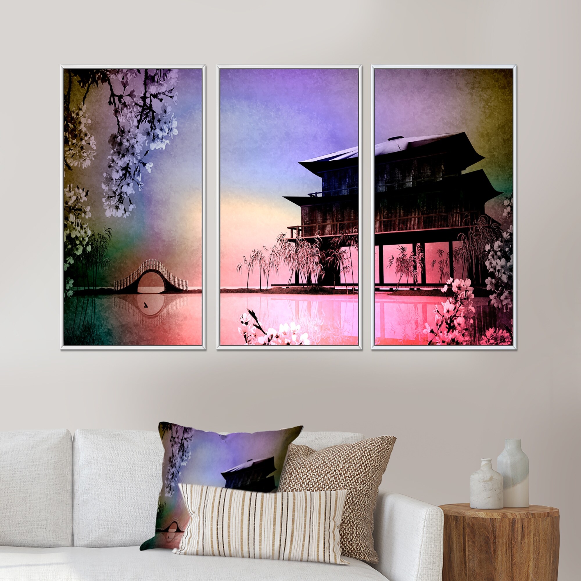 Designart "Rural Landscape with Flowers" Landscape Framed Wall Art Set of 3 - 4 Colors of Frames