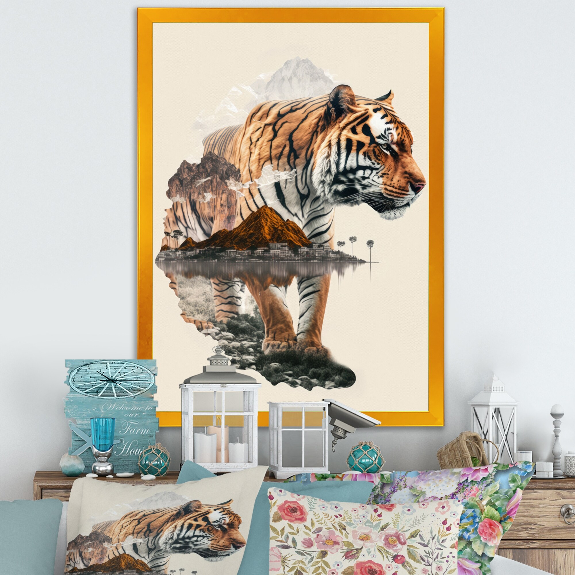 Designart "Double Exposure of a Tiger With African Landscape I" Modern Framed Art Print