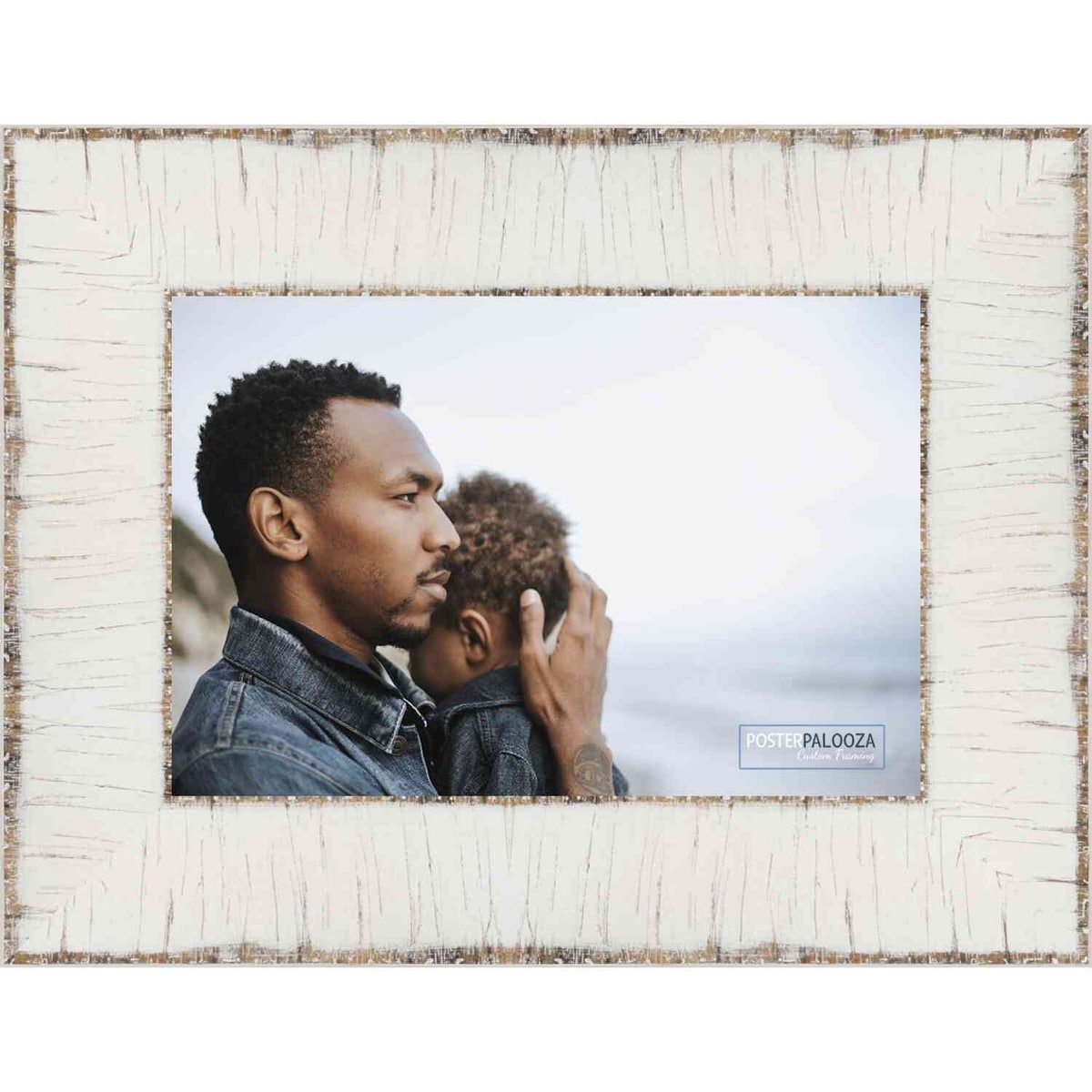 10x24 Rustic White Complete Wood Picture Frame with UV Acrylic, Foam Board Backing, & Hardware