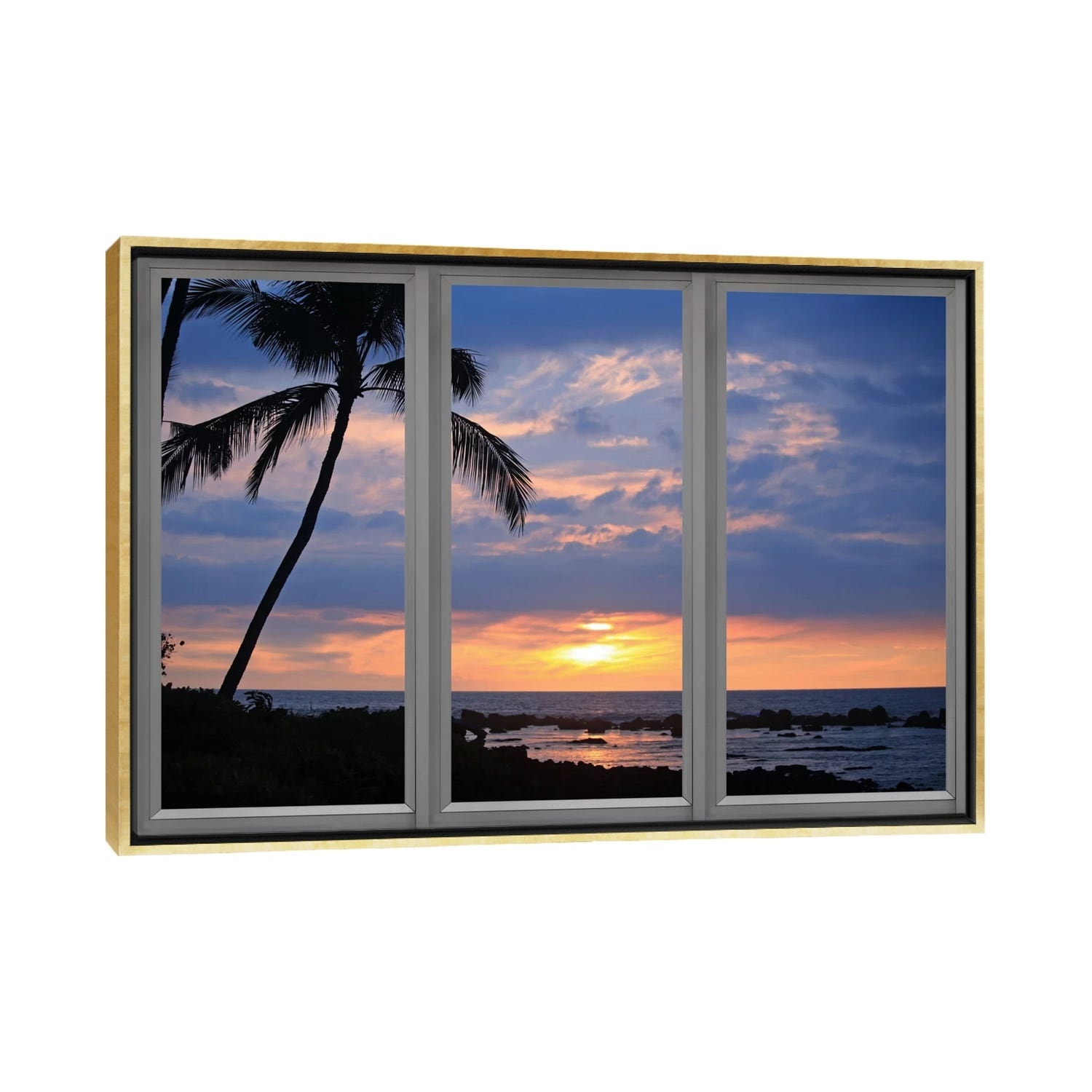 iCanvas "Beach Sunset Window View" by Unknown Artist Framed Canvas Print