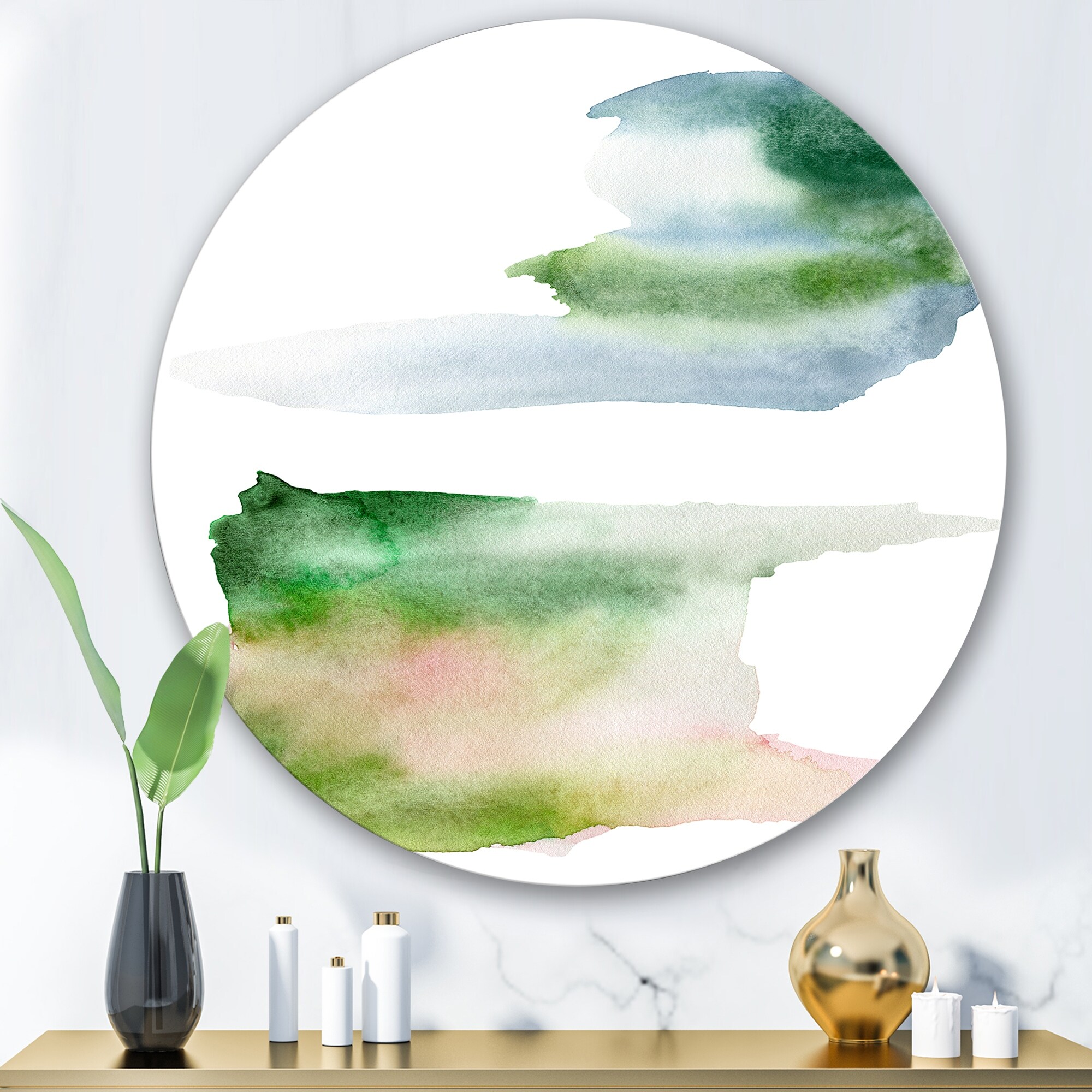 Designart 'Blue Pink and Green Spots Clouds' Modern Metal Circle Wall Art