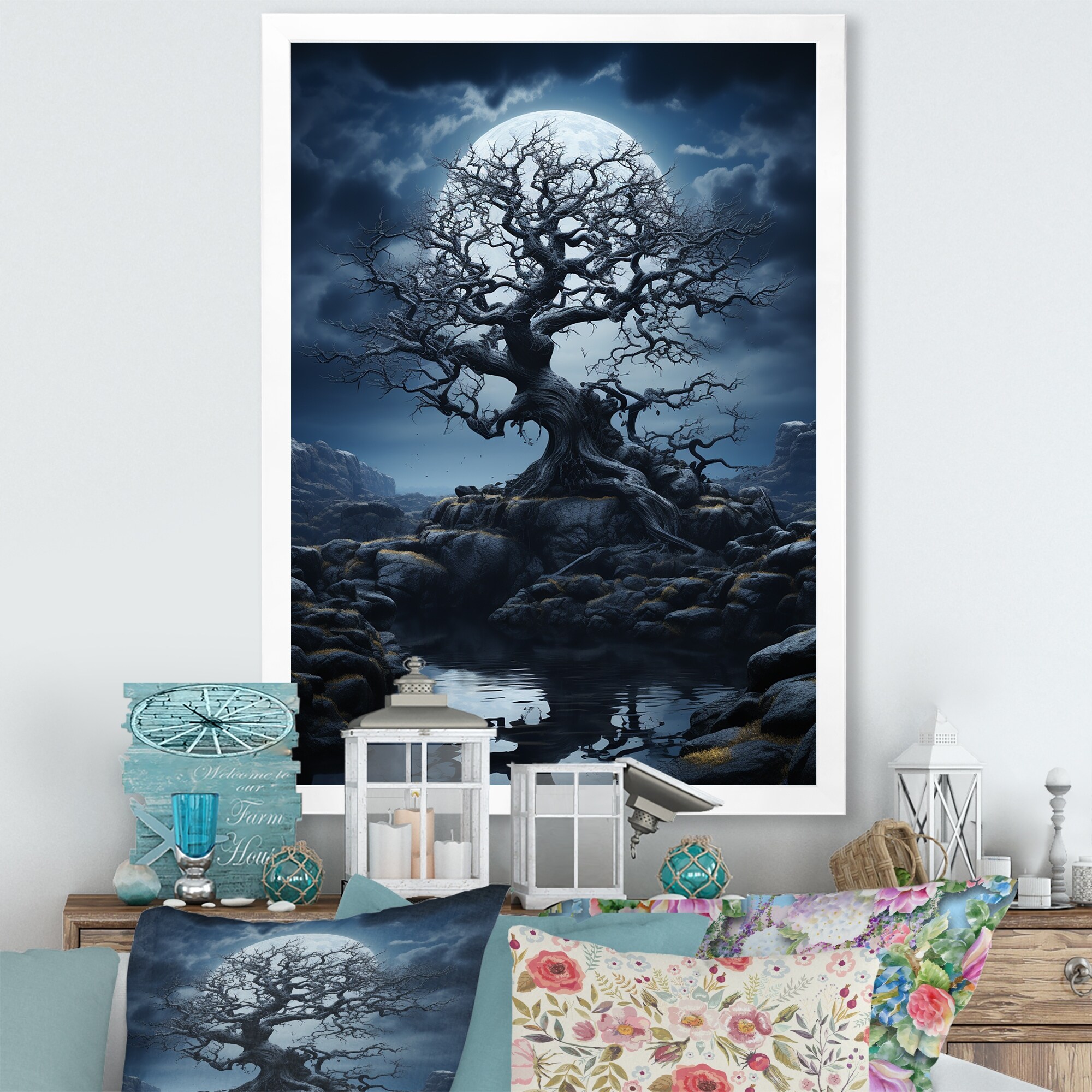 Designart "Blue Grey Tree Silent Strength II" Landscape Trees Framed Canvas Wall Art