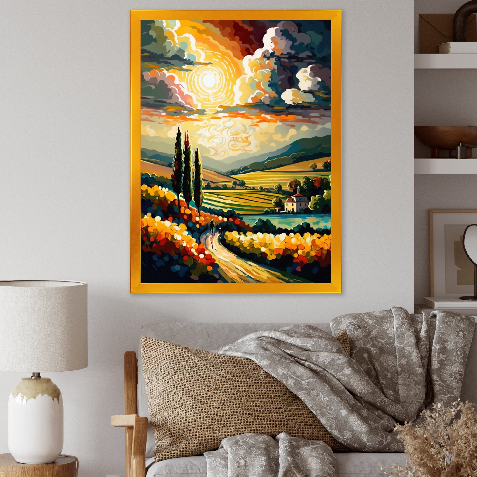 Designart "Sun Rays Peaking Through Clouds I" Landscape Mountains Framed Wall Art for Living Room