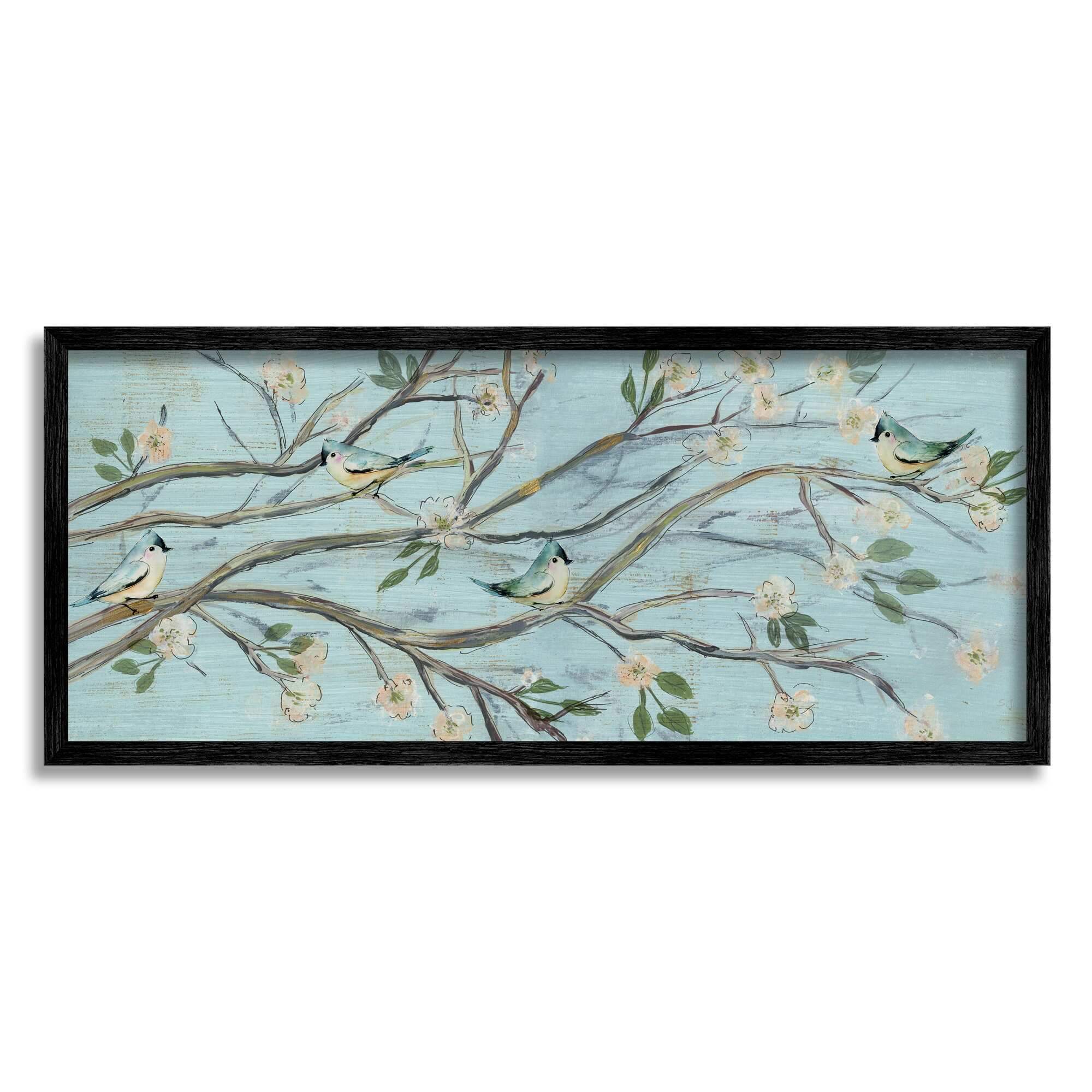 Stupell Tranquil Blue Birds Cherry Blossom Tree Branch Framed Wall Art - Brown