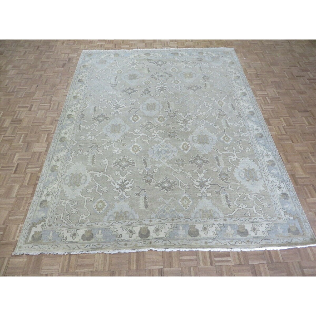 Hand Knotted Beige Oushak with Wool Oriental Rug (9'2" x 11'7") - 9'2" x 11'7"