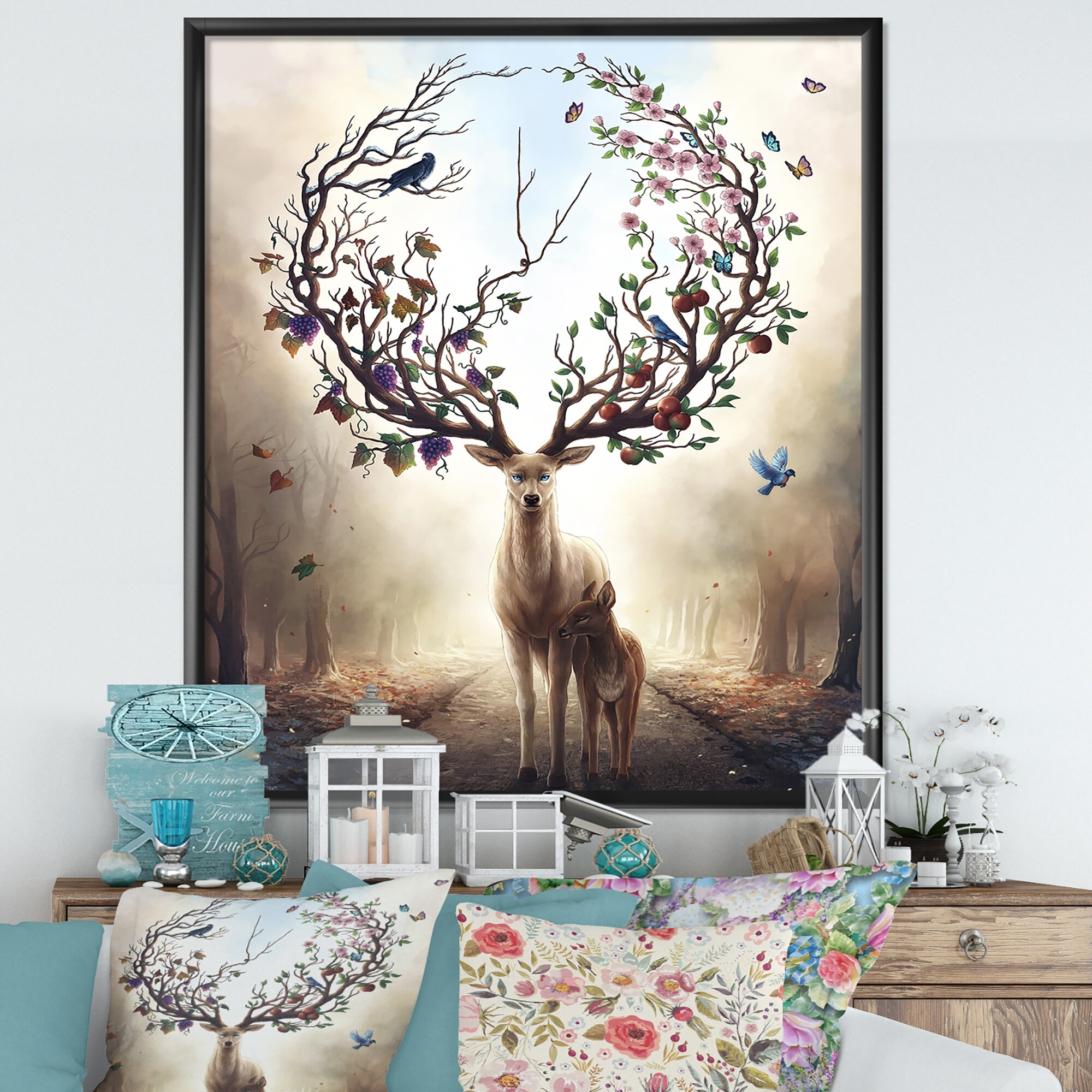 Designart "Deer With Blossoming Antlers" Cottage Framed Art Print