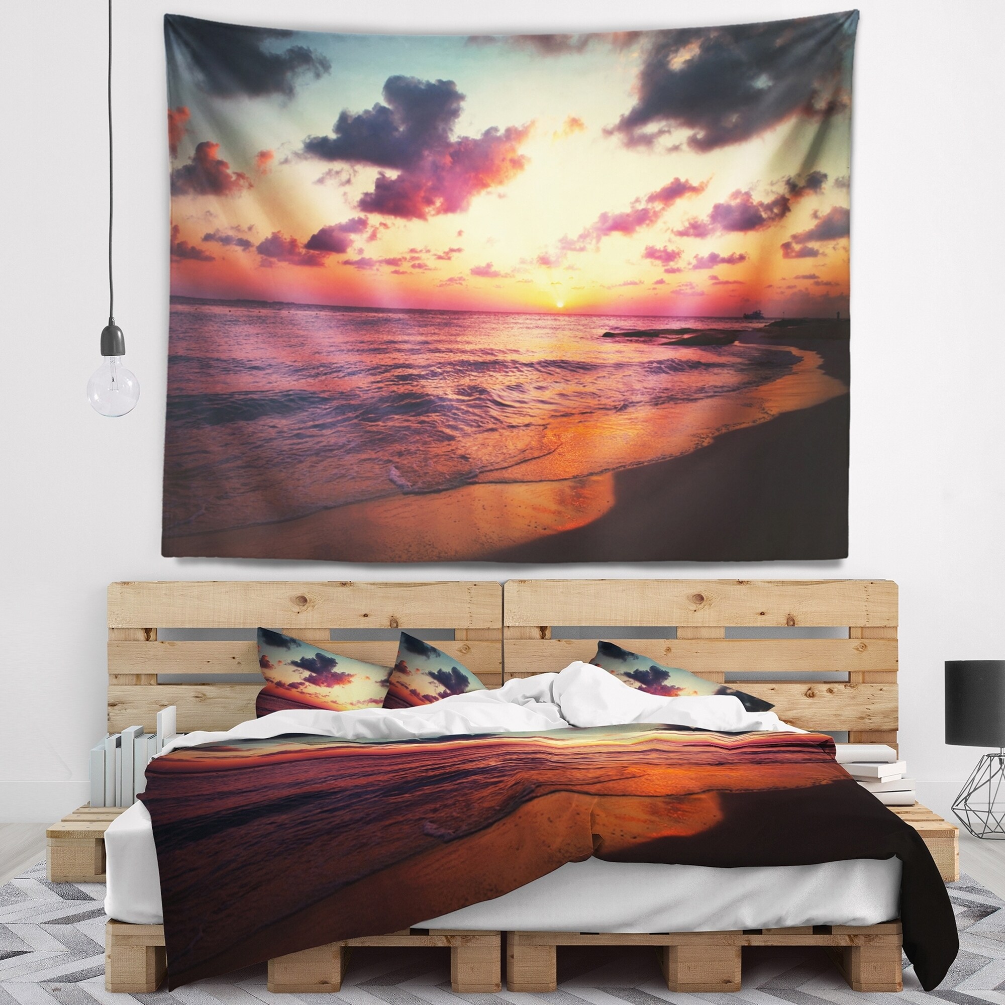 Designart 'Sea Sunset Landscape View' Seashore Wall Tapestry