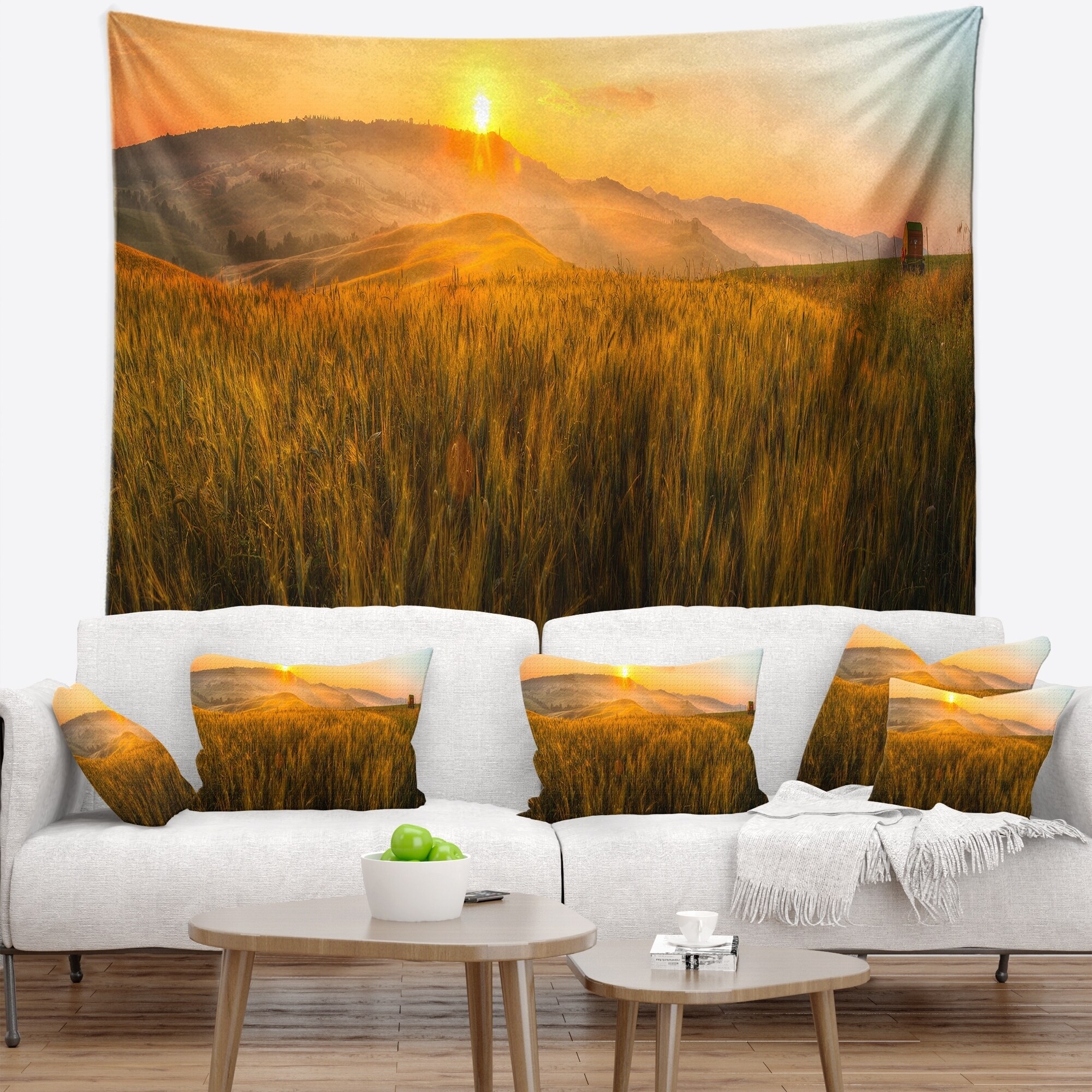 Designart 'Tuscany Wheat Field at Sunrise' Landscape Wall Tapestry