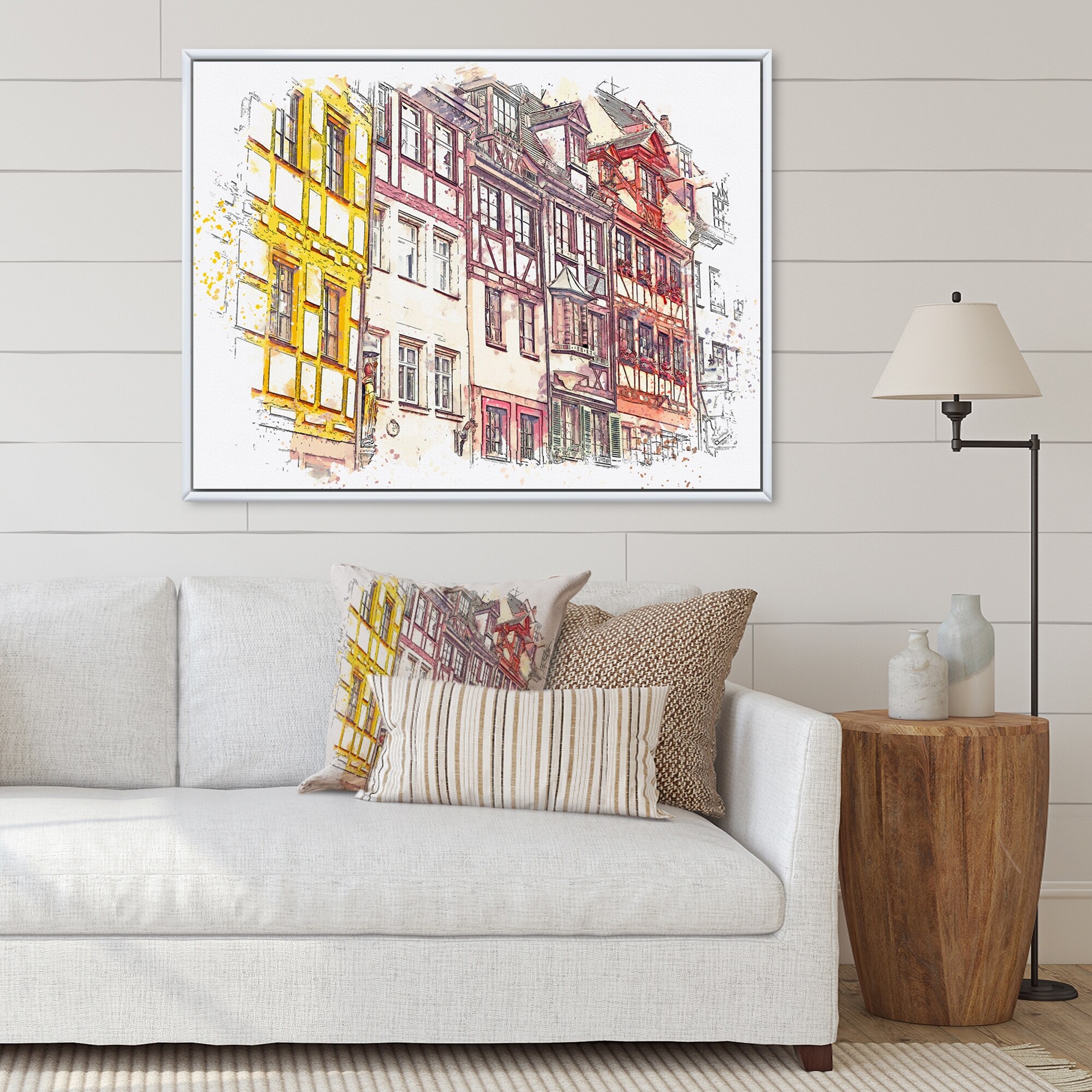 Designart "Traditional German Architecture Cityview" Mid-Century Modern Framed Canvas Wall Art Print