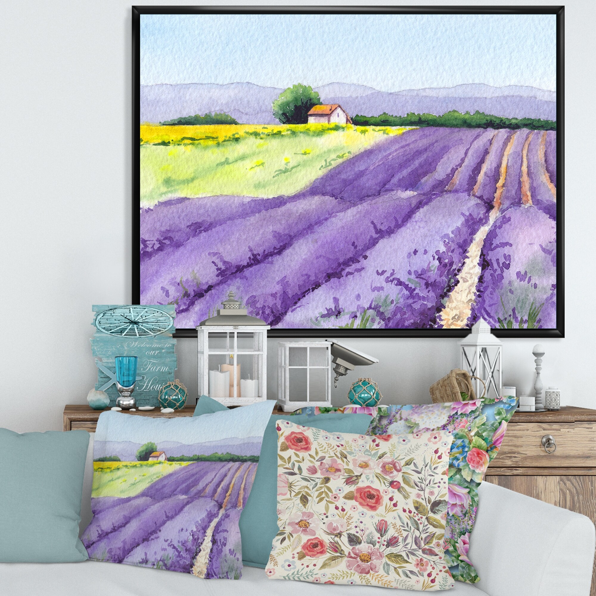Designart "Lavender Field With Rural House in Provence" Country Framed Canvas Wall Art Print