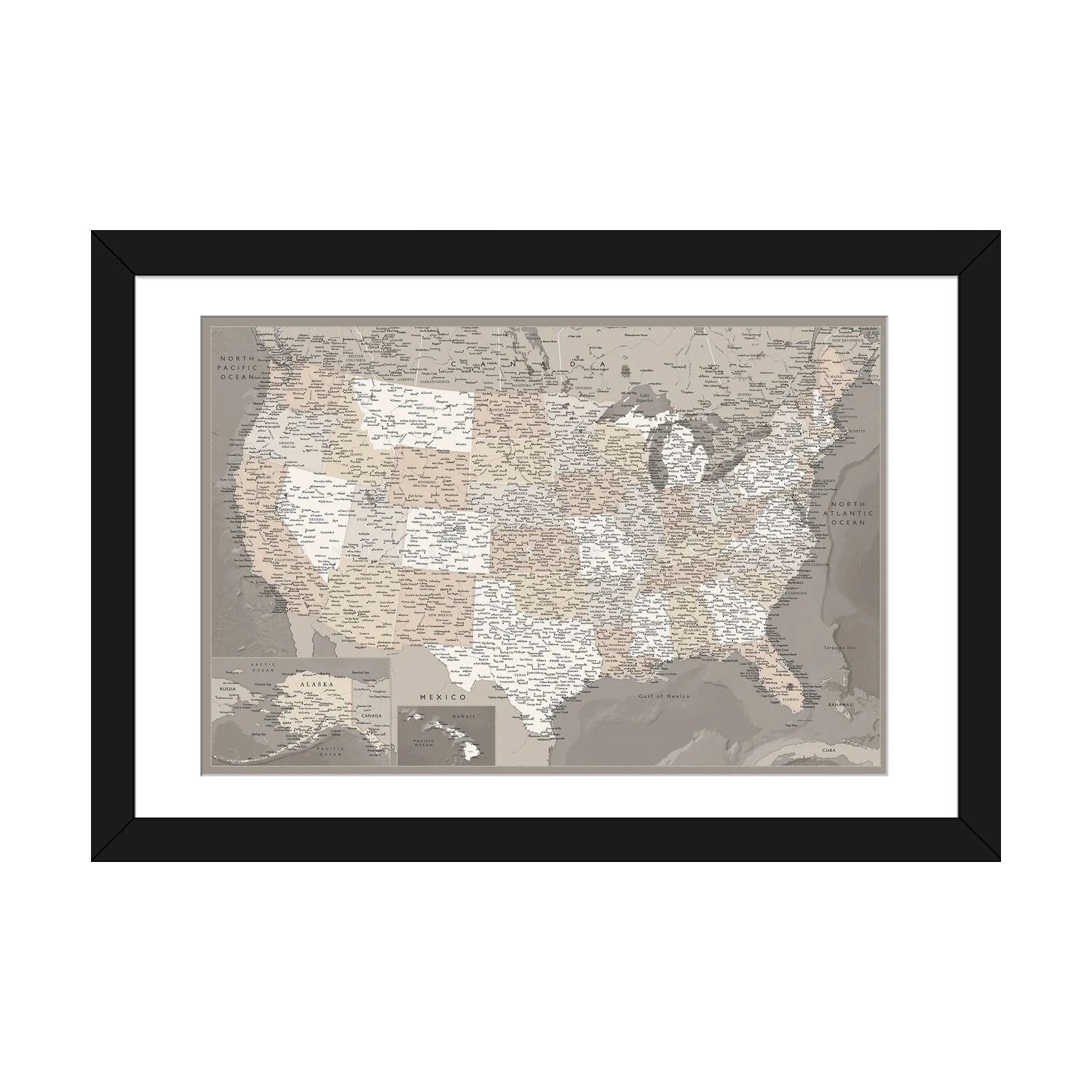 iCanvas "Detailed Brown Map of the Usa, Davey" by blursbyai