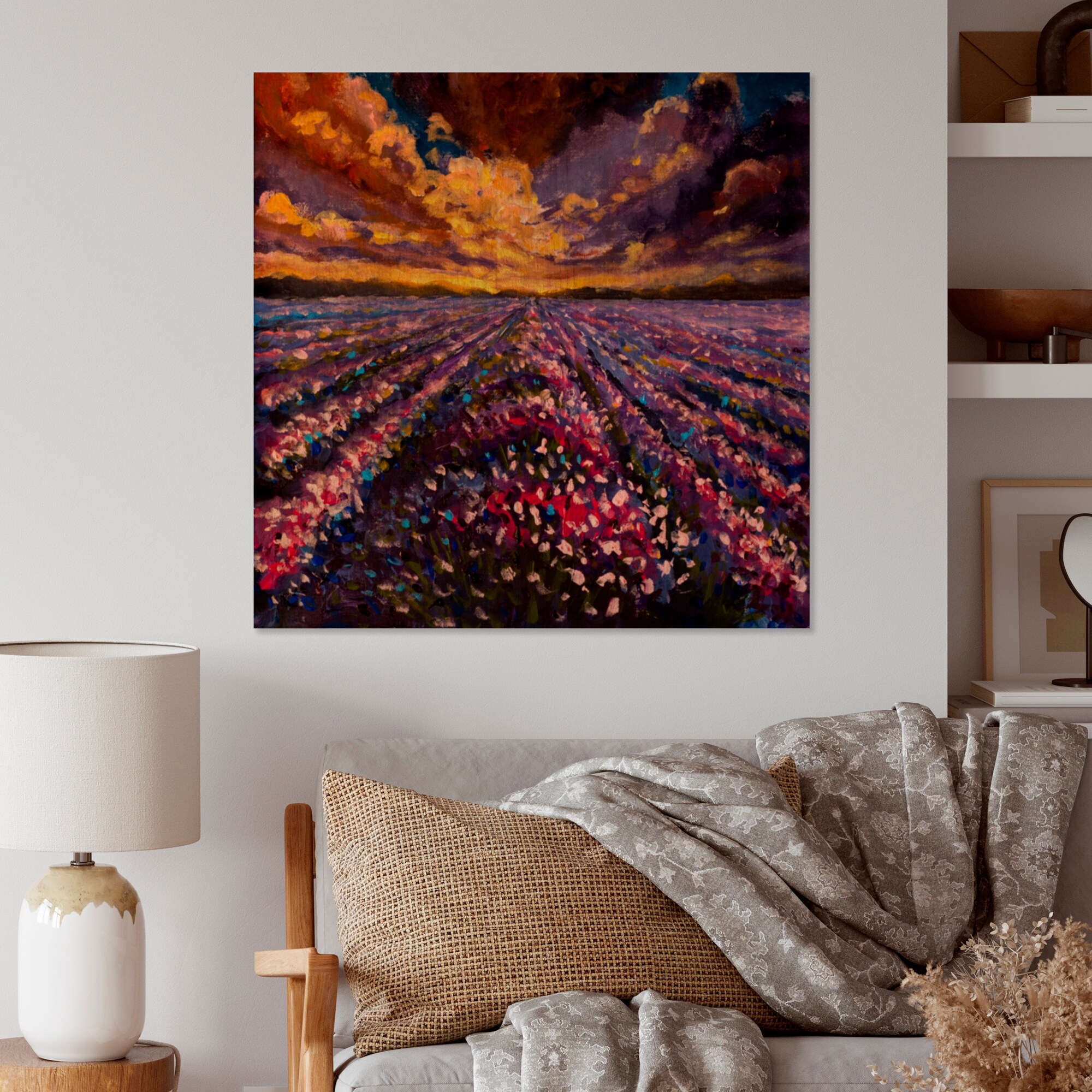 Designart 'Lavender Purple Field Sunset' Traditional Wood Wall Art Décor - Natural Pine Wood