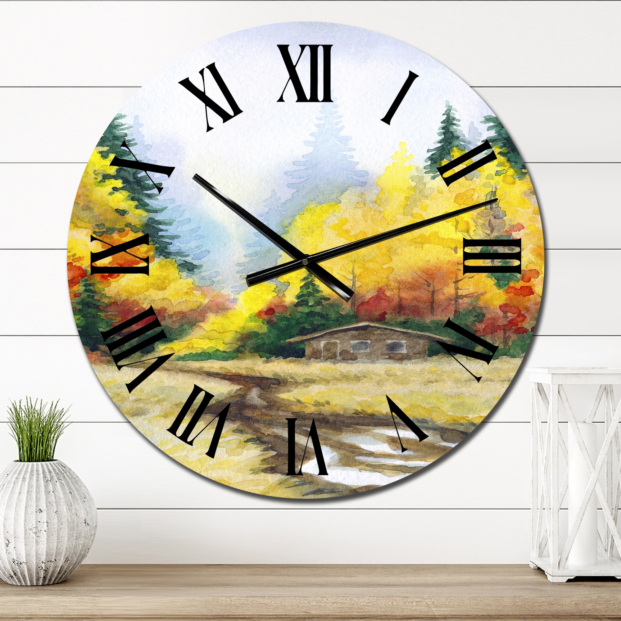 Designart 'Yellow Autumn Trees' Traditional wall clock