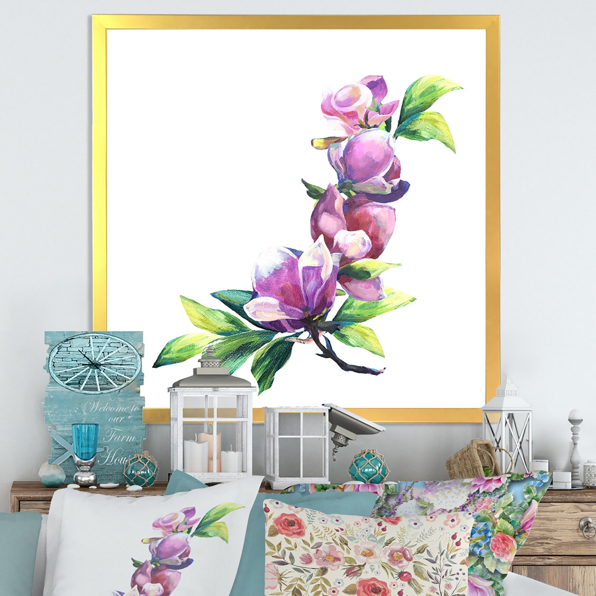 Designart "Green And Pink Flower Arrangement IV" Traditional Framed Wall Art