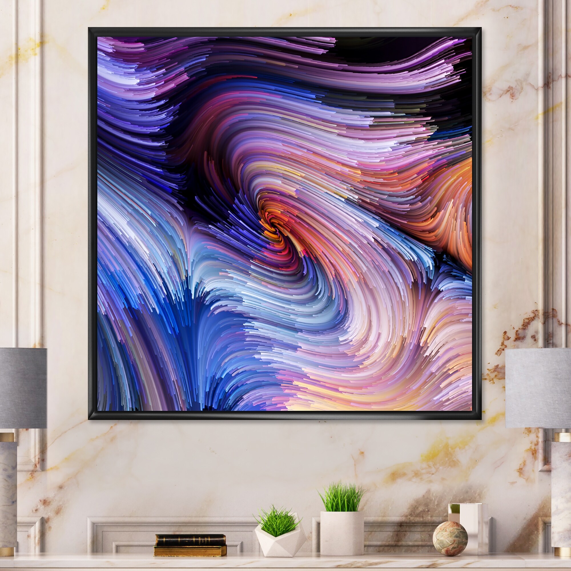 Designart "Blue Orange Purple Paint Strokes" Modern Framed artwork