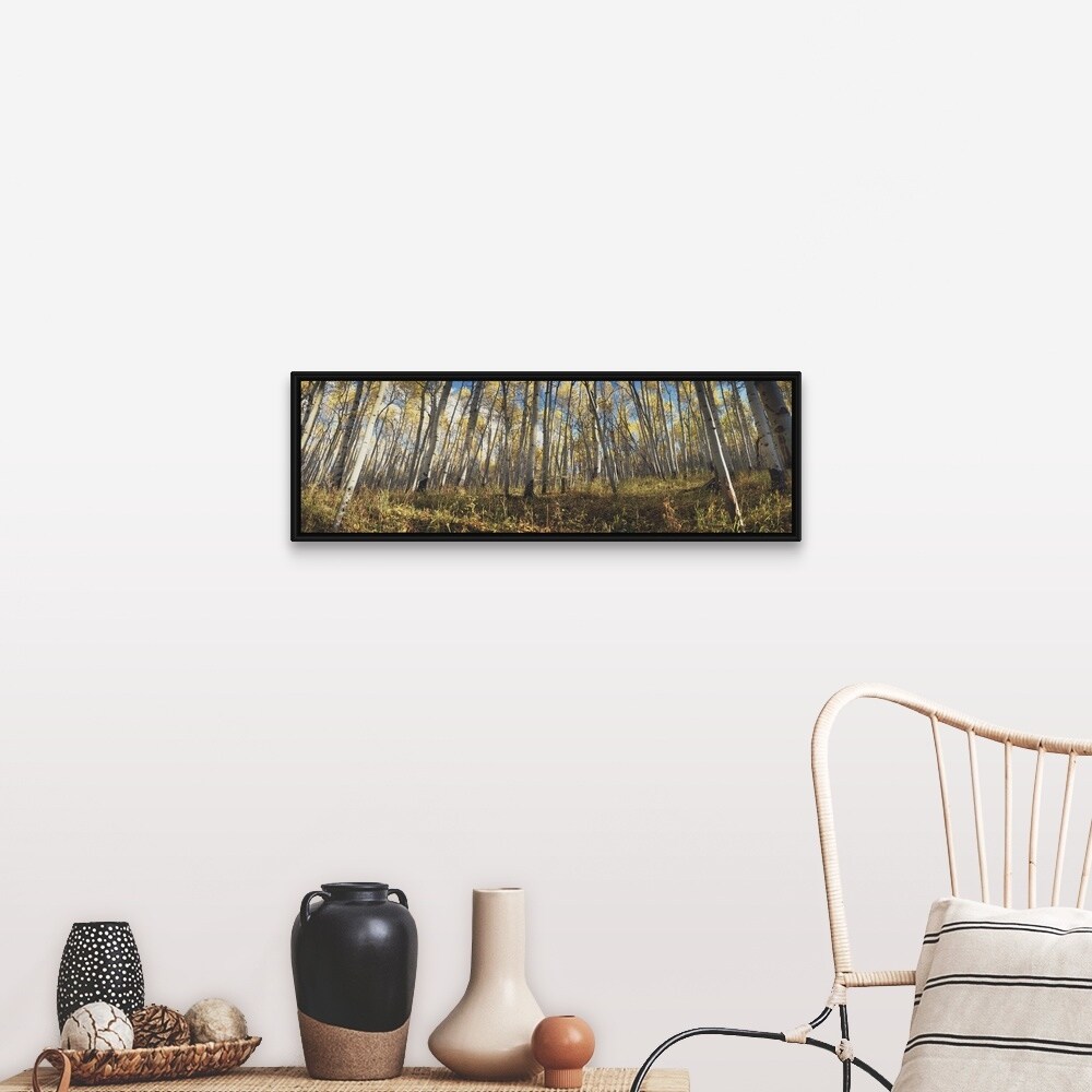 "Low angle view of aspen trees, Uncompahque National Park, Colorado" Black Float Frame Canvas Art