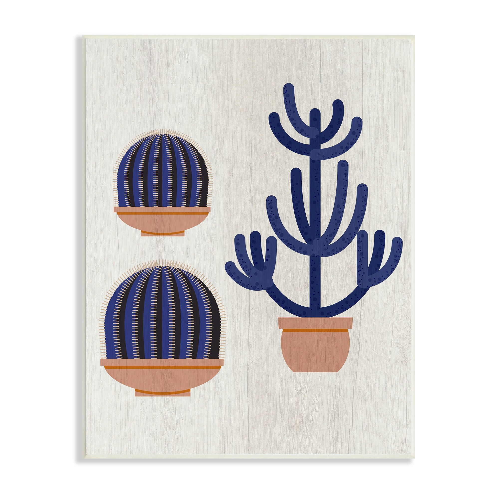 Stupell Industries Modern Cactus Trio Abstract Blue Cacti Potted Wood Wall Art