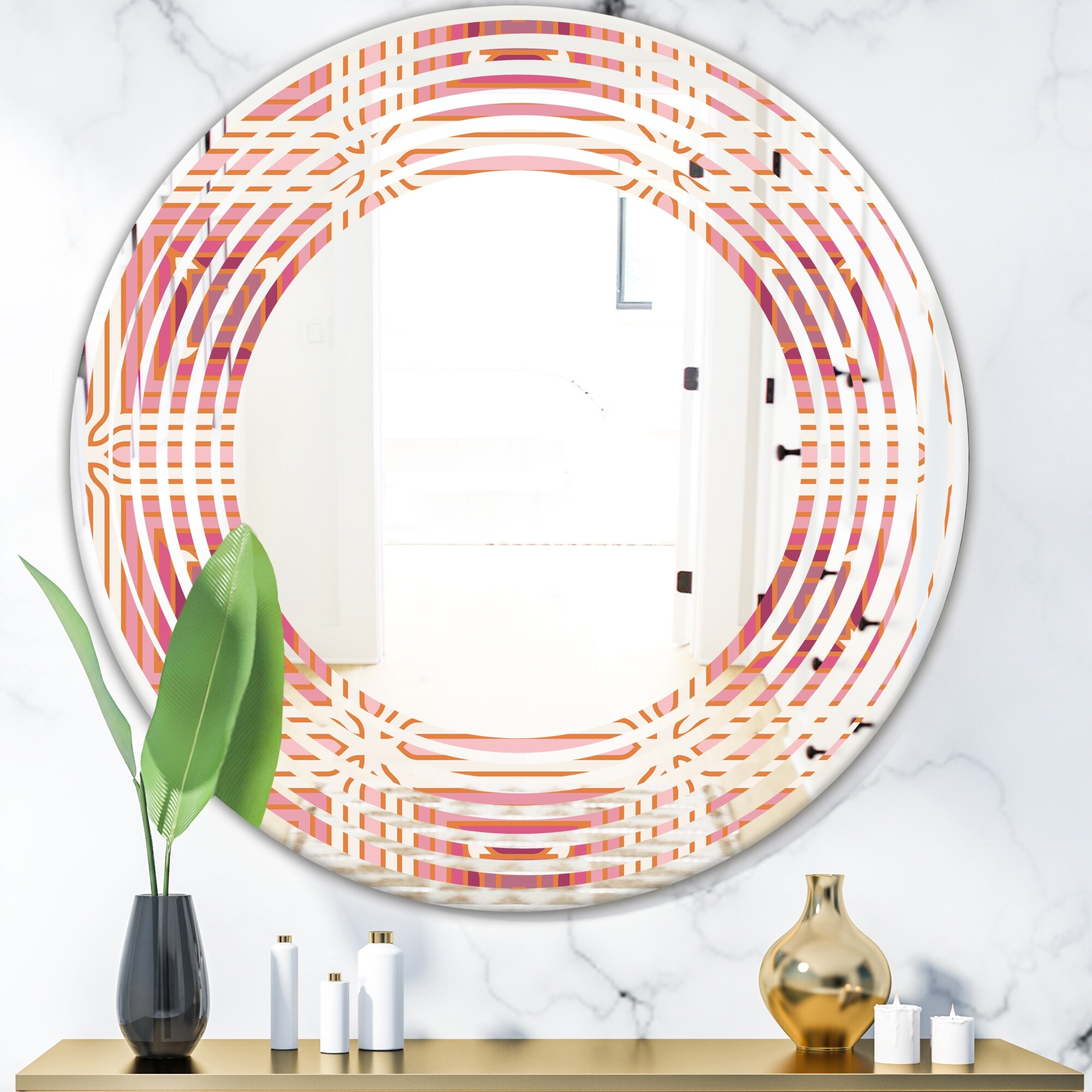 Designart 'Geometric Retro Design II' Printed Modern Round or Oval Wall Mirror - Wave