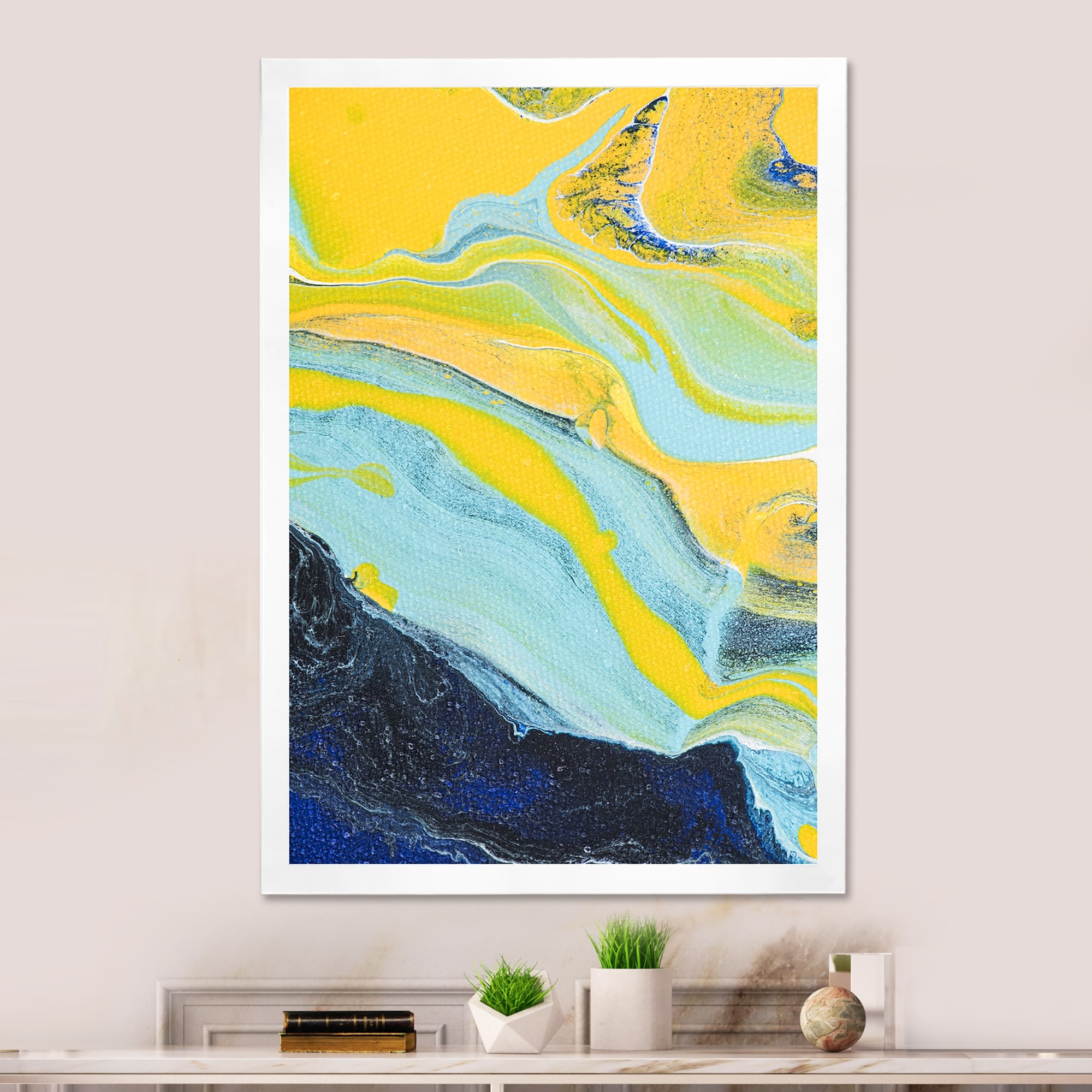 Designart "Dark Blue And Yellow Marble Art III" Modern Framed artwork