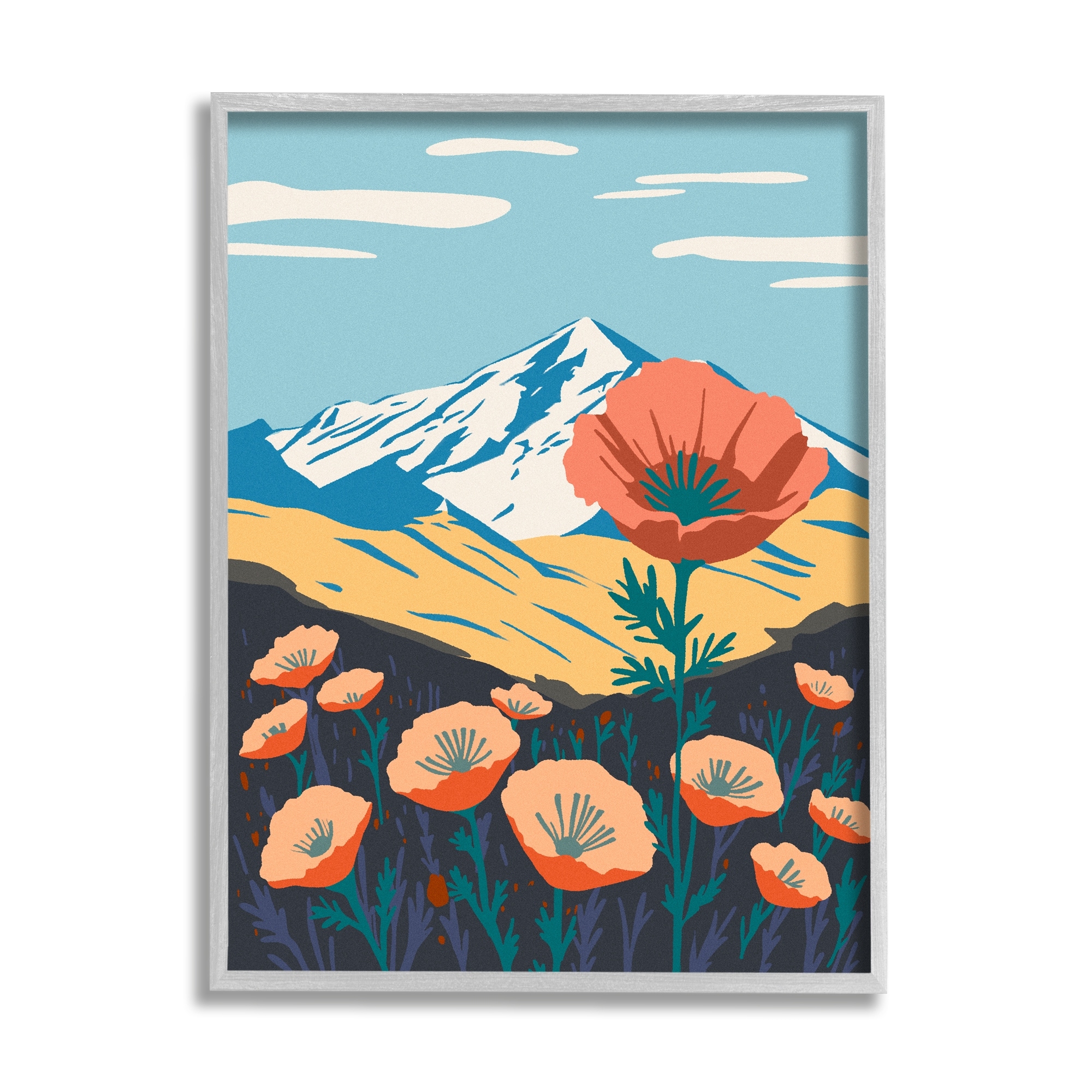Stupell Industries Poppy Blooms Mountain Landscape Framed Giclee Art by Ziwei Li