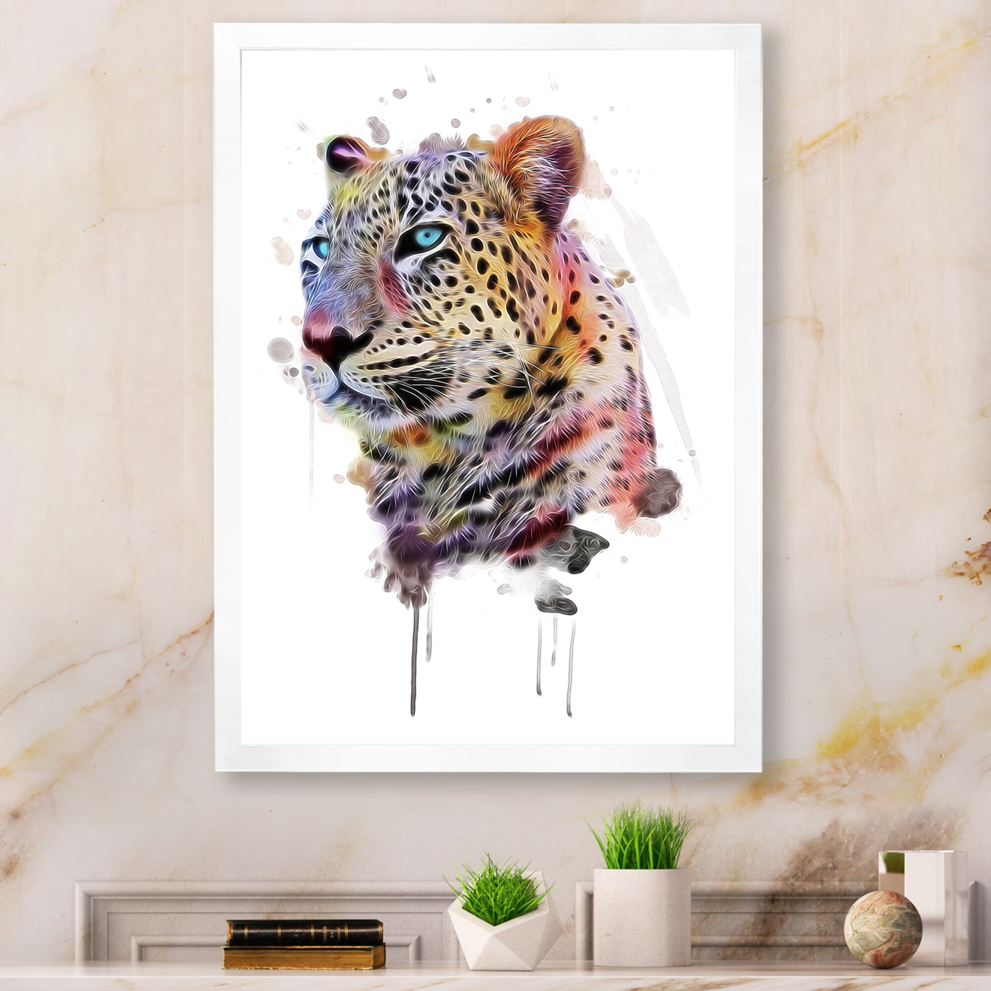 Designart "Colorful Colorful Leopard Portrait II" Children's Art Framed Wall Decor