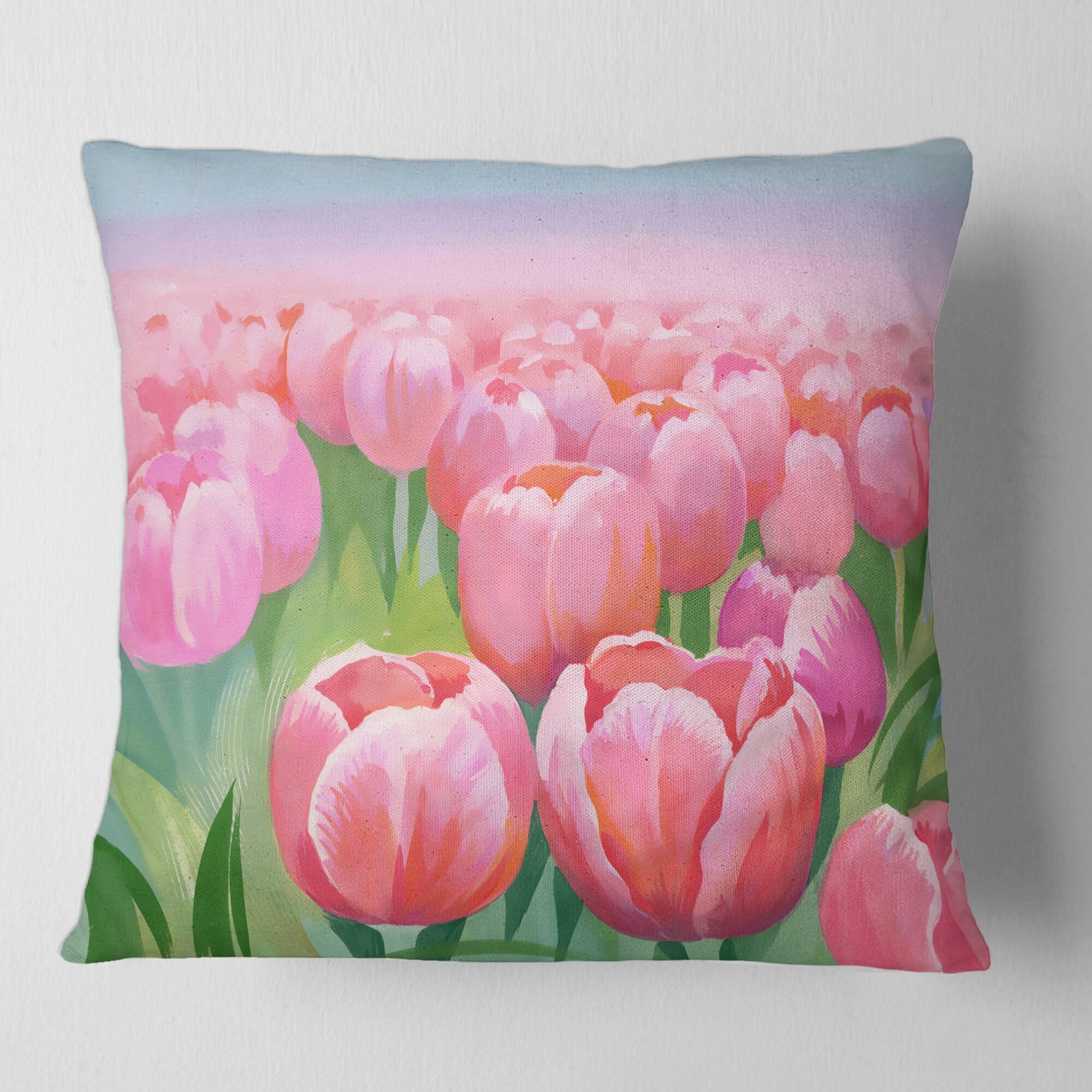 Designart 'Field of Pink Tulips' Traditional Printed Throw Pillow