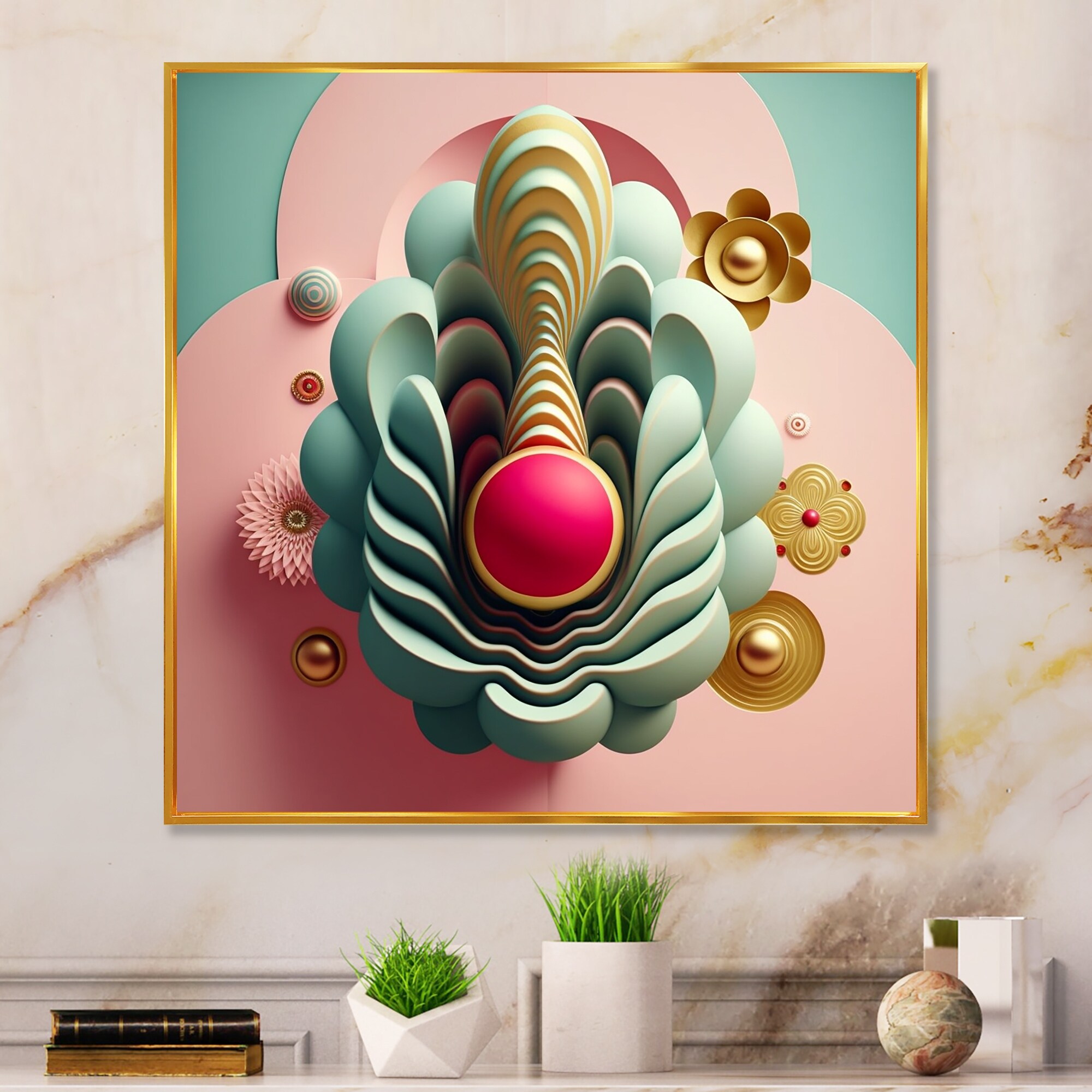 Designart "Pastel And Gold Playfulness I" Modern Abstract Framed Canvas Wall Art Print