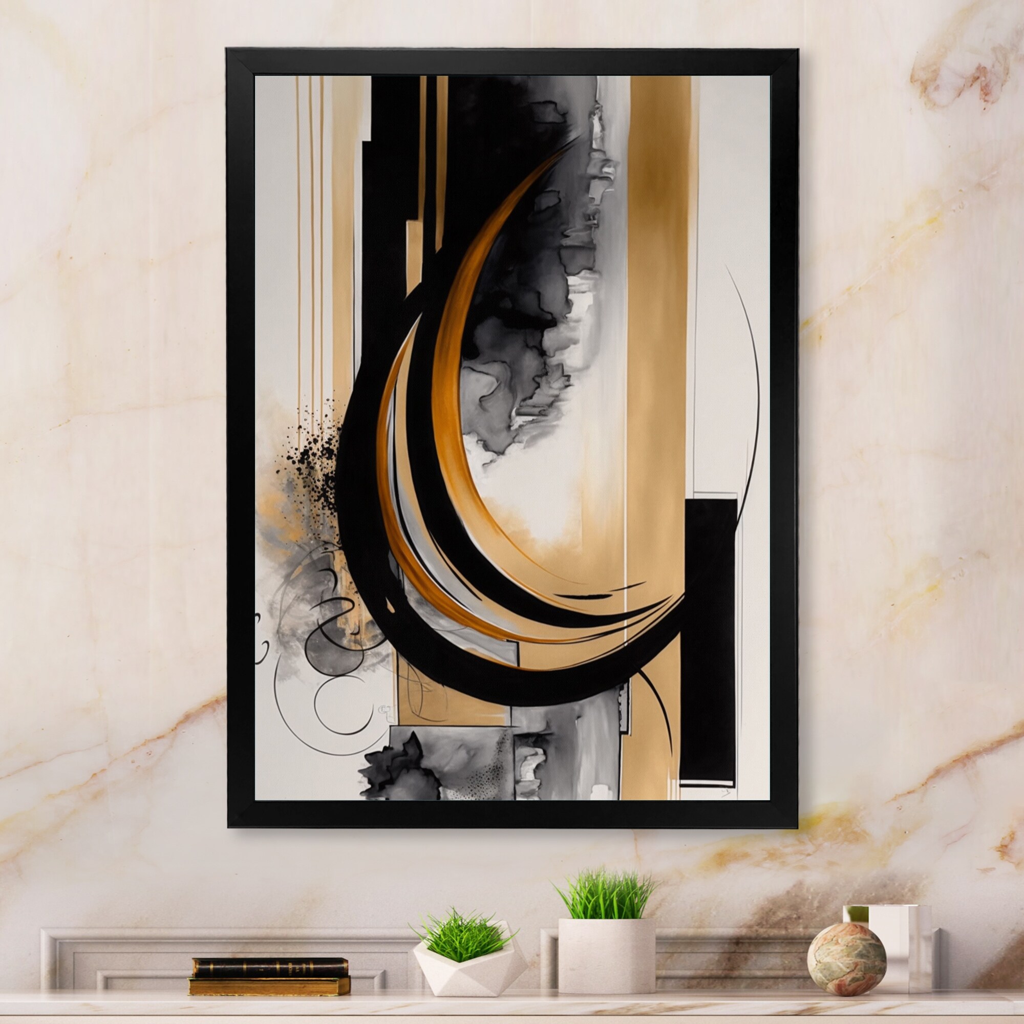 Designart "Gold Touch Art Deco II" Modern Framed Art Print