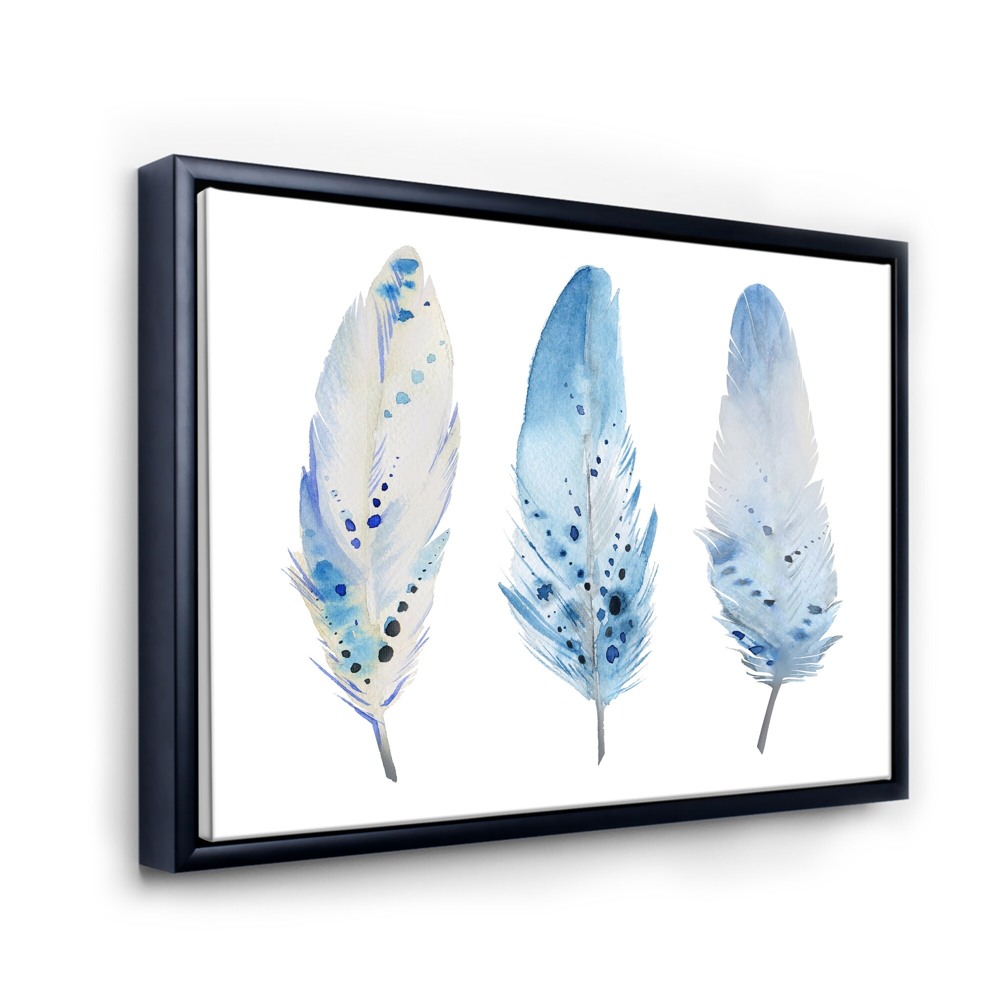Designart "Blue Boho Feathers II" Lake House Framed Canvas Wall Art Print