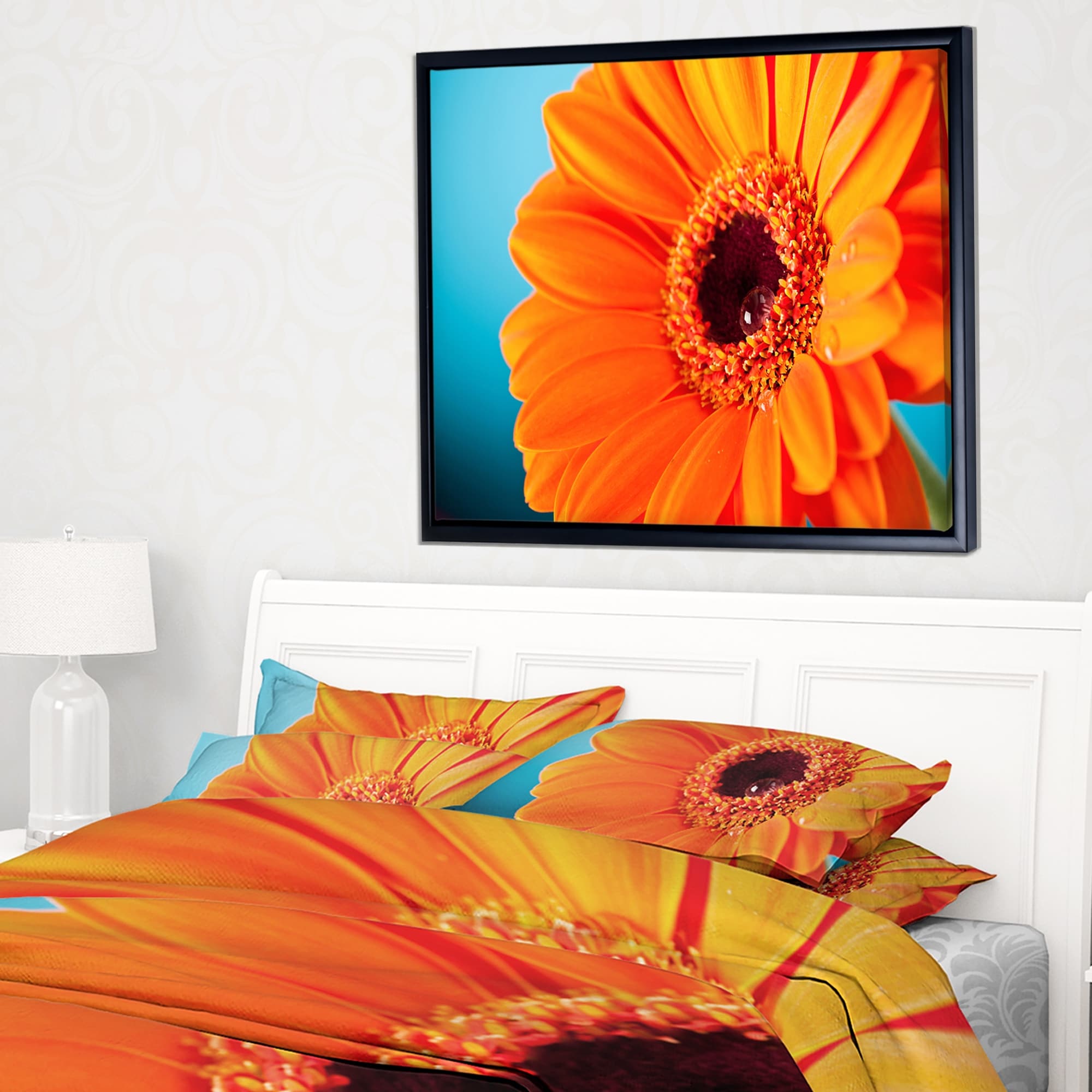 Designart "Orange Daisy Gerbera Flower Close up" Flowers Framed Canvas Wall Artwork Print
