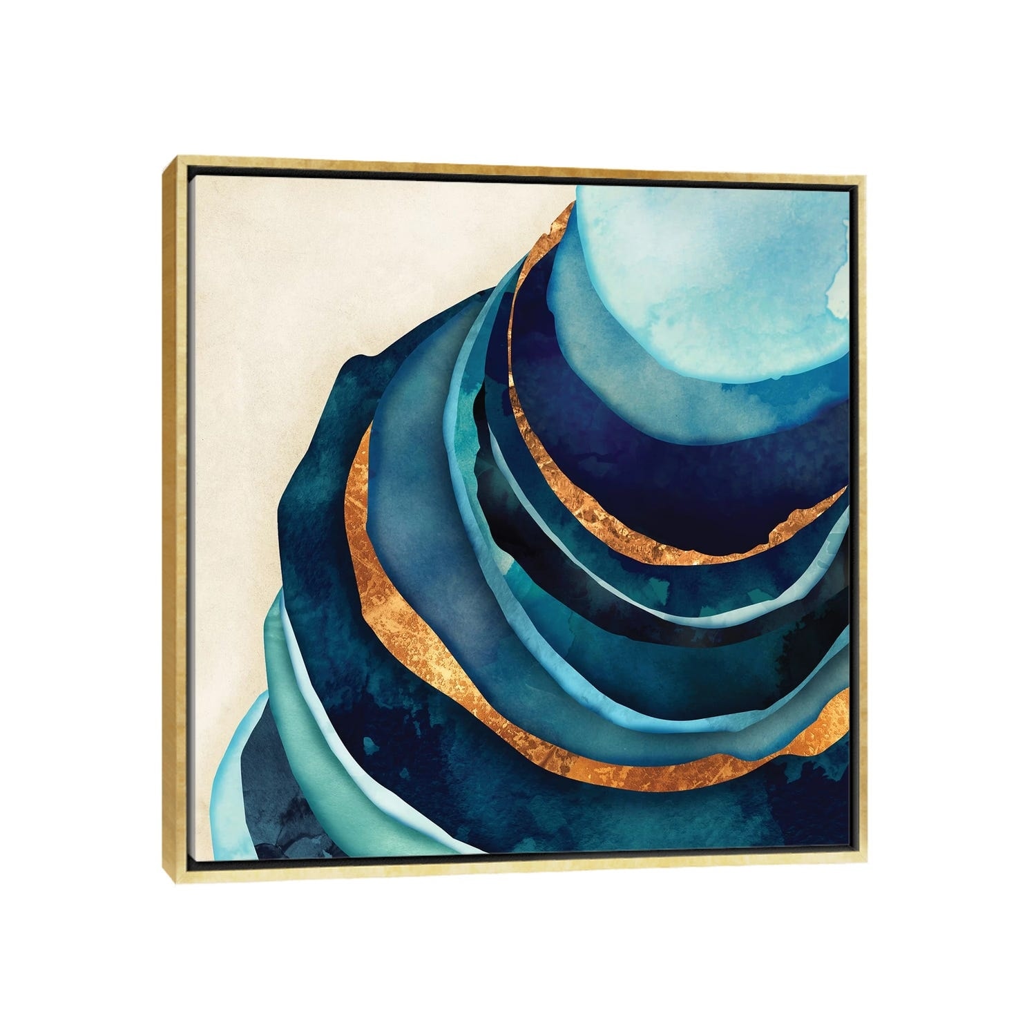 iCanvas "Abstract Blue And Gold" by SpaceFrog Designs Framed