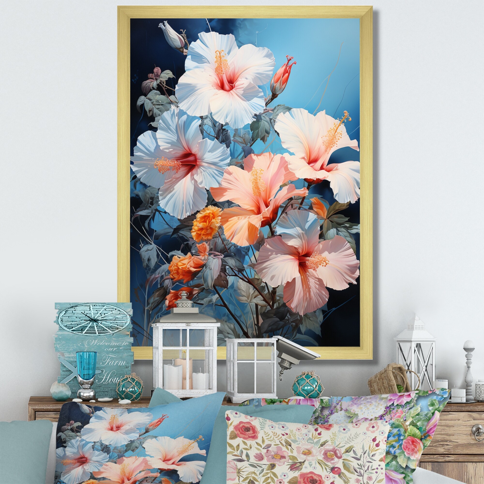 Designart "Hibiscus Romantic Impression II" Hibiscus Framed Canvas Art Print