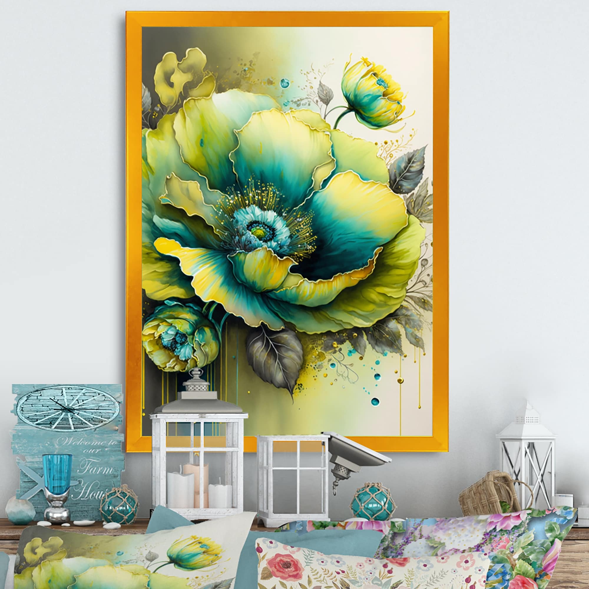 Designart "Tropical Turquoise Joyfulness IV" Abstract Liquid Ink Framed Art Print