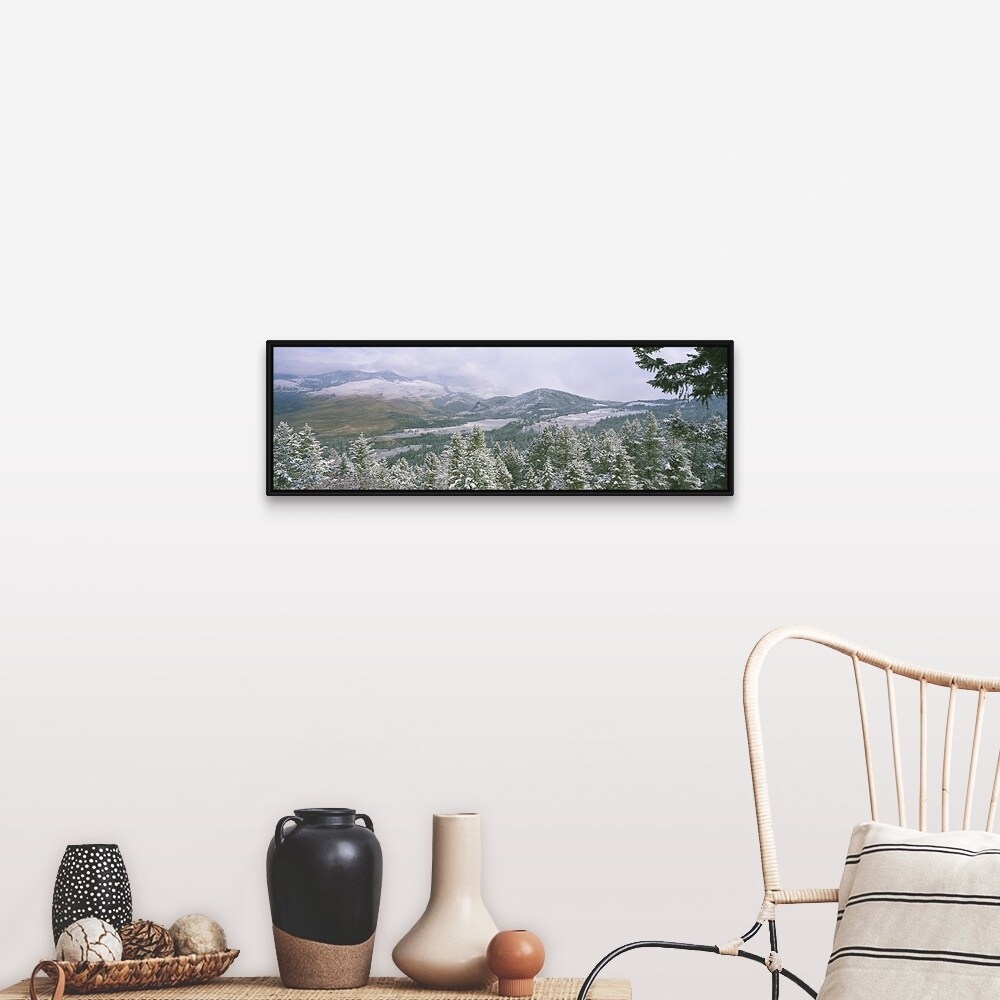 "First Snow Yellowstone National Park WY" Black Float Frame Canvas Art