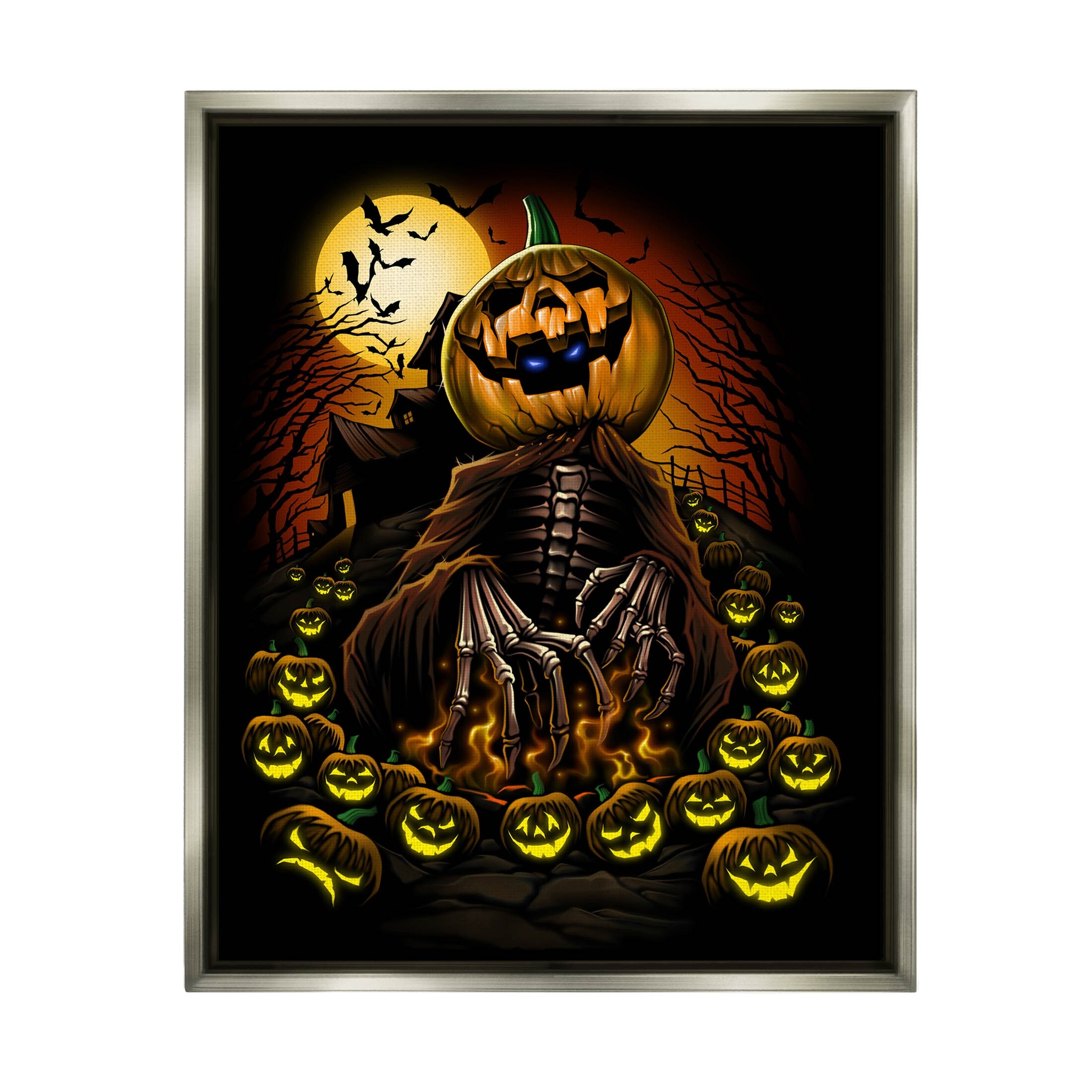 Stupell Industries Spooky Pumpkin Skeleton Haunted Woods Floater Canvas Wall Art by Liquid Blue