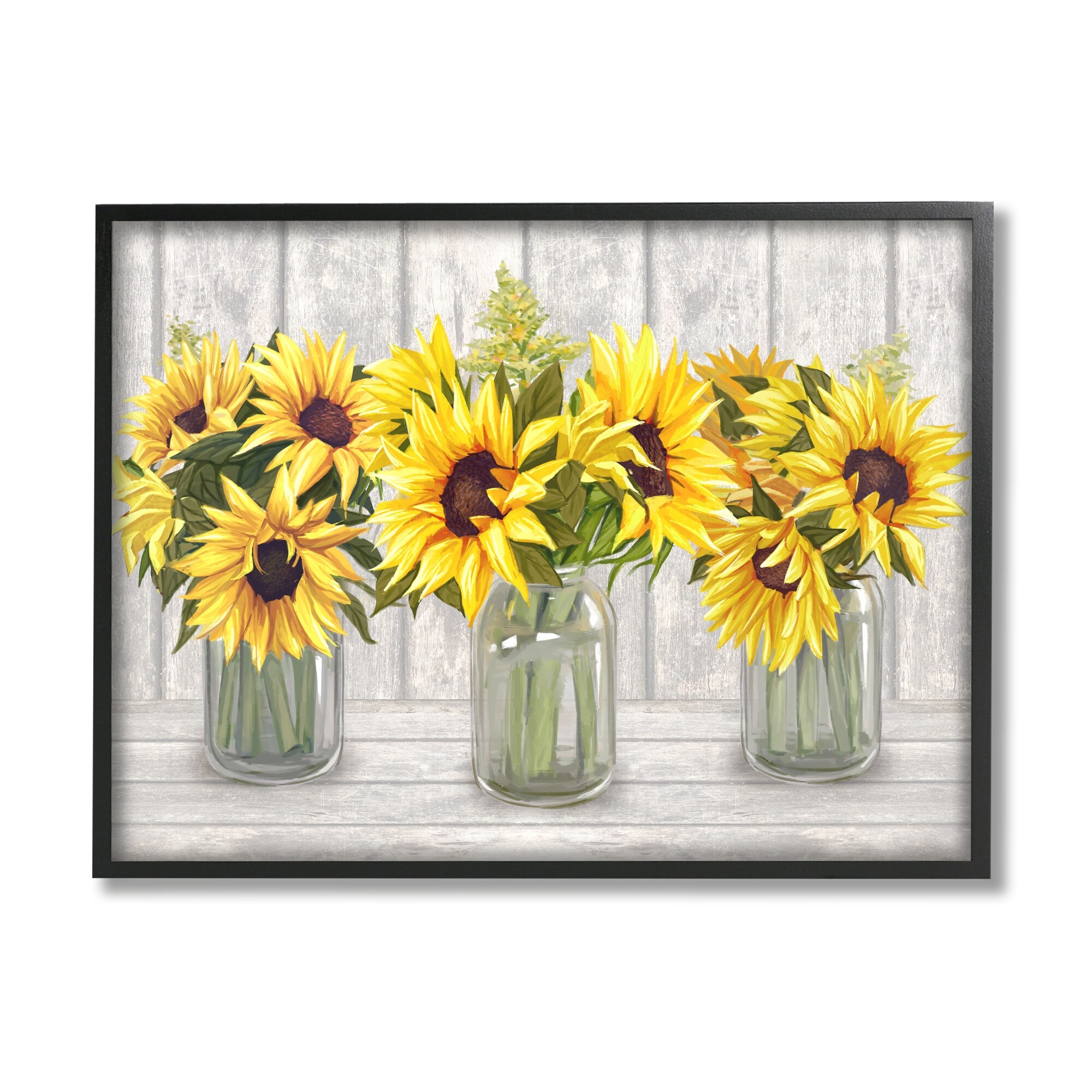 Stupell Three Sunflower Bouquets Country Planks Still Life Framed Wall Art, Design by Ziwei Li