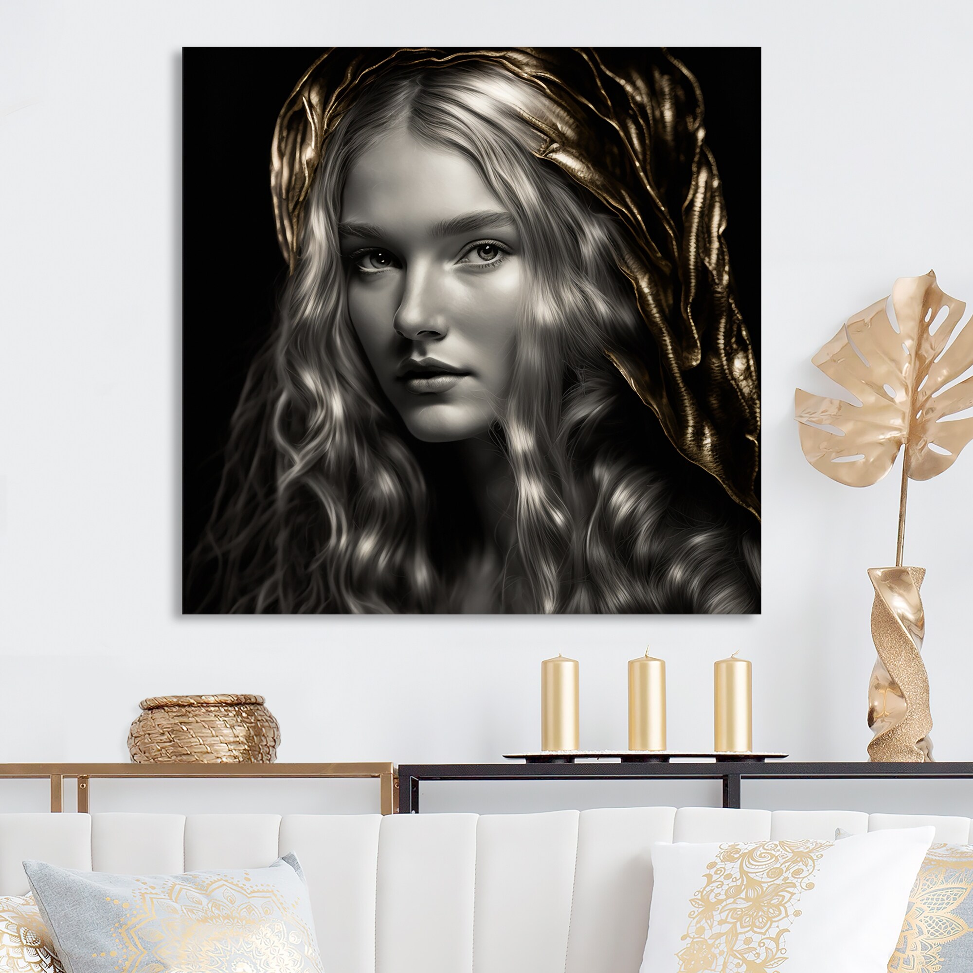 Designart 'Vintage Gold Woman Portrait III' Boho Woman Metal Wall Art
