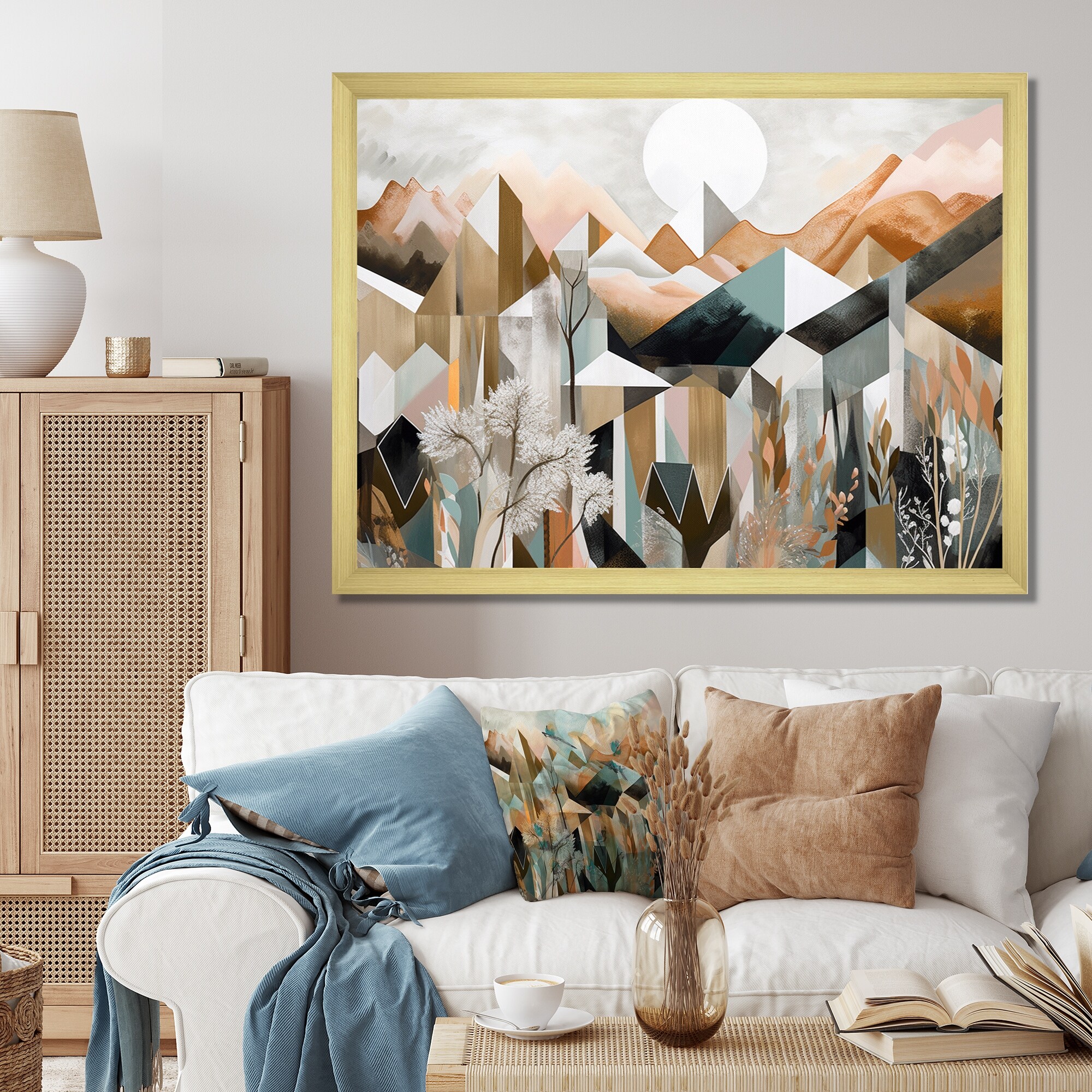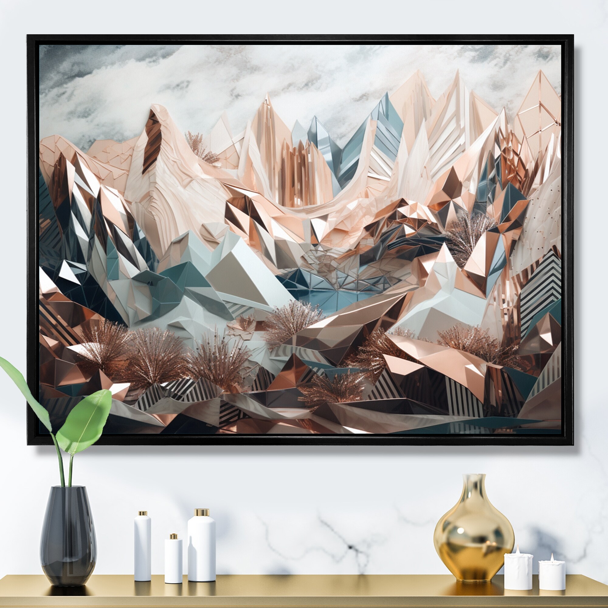 Designart "Rose Gold Metallic Mountains Ii" Minimalism Landscape Framed Canvas Art Print