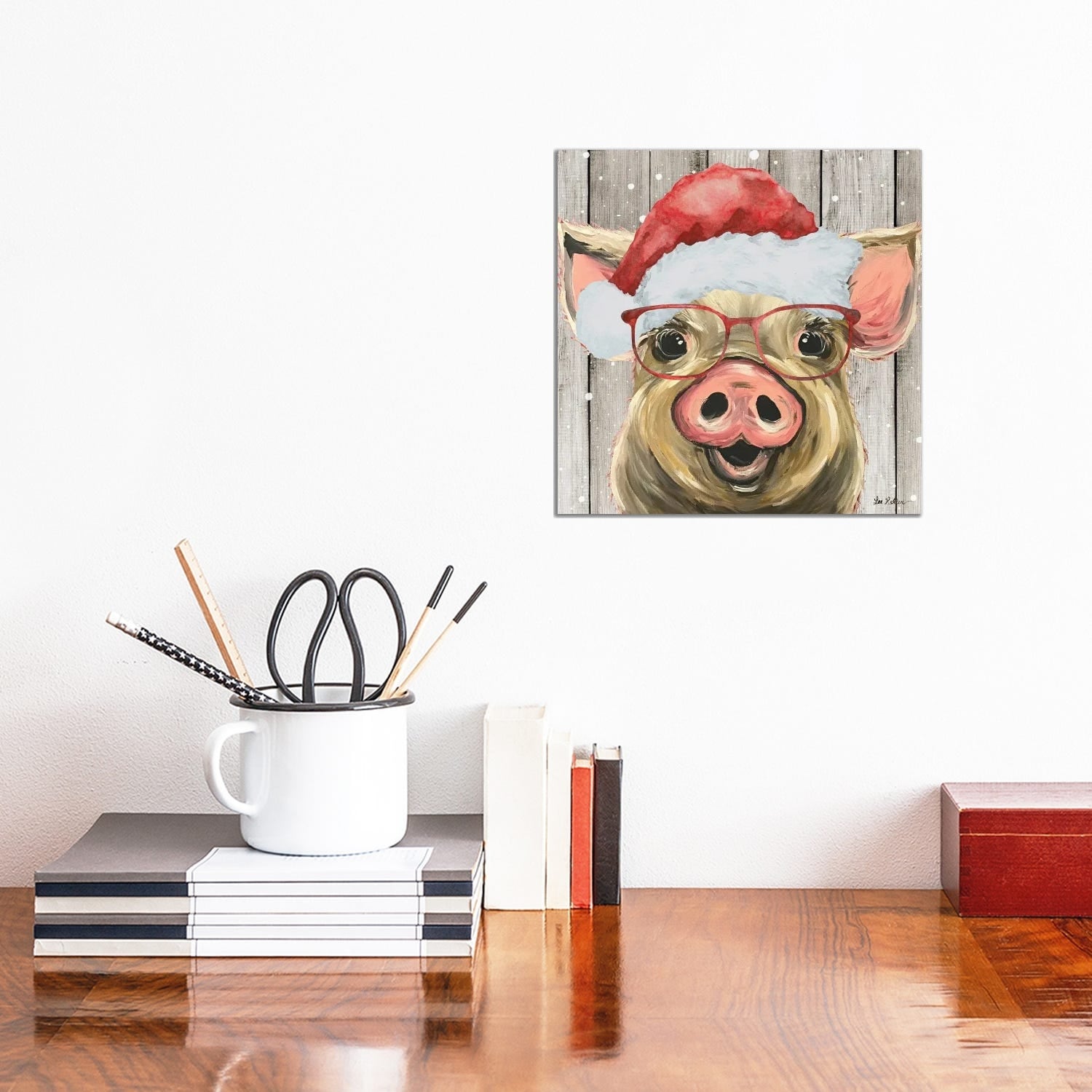 iCanvas "Farmhouse Christmas Pig 'Posey'" by Hippie Hound Studios Canvas Print
