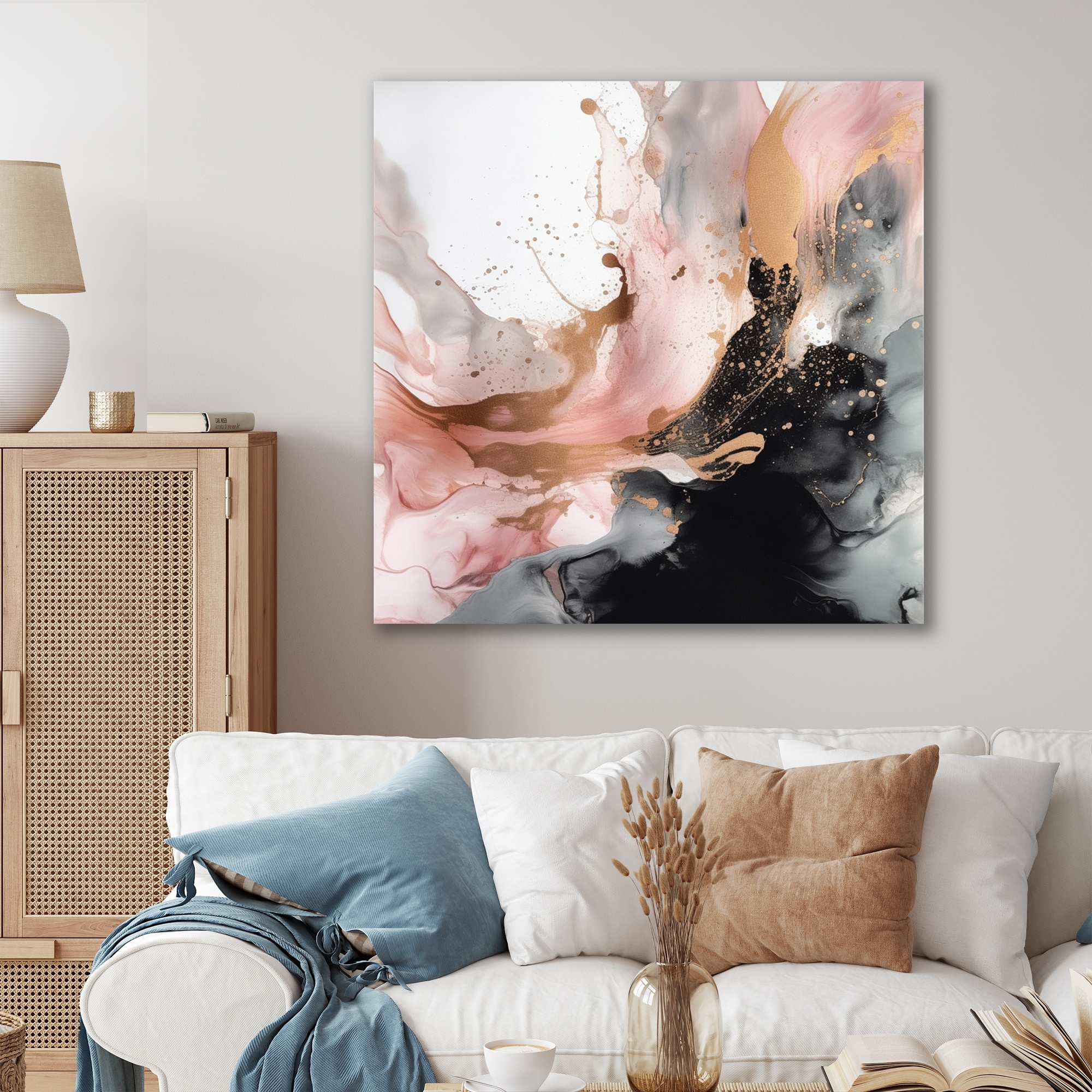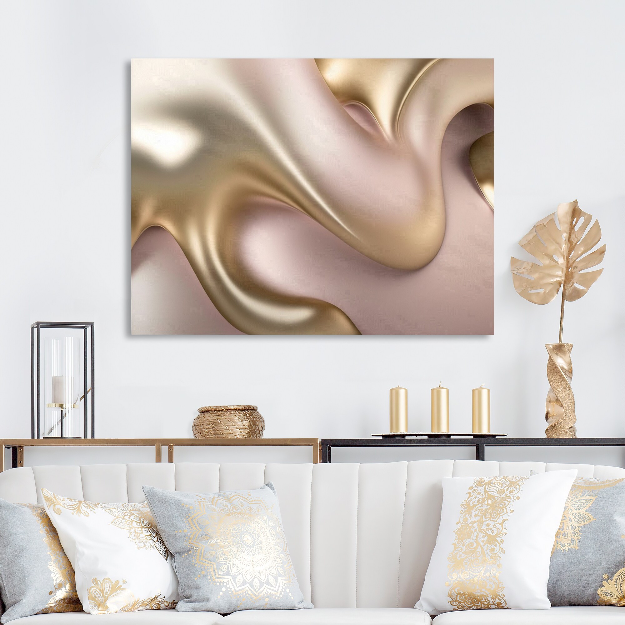 Designart 'Luscious Liquid Gold in Subdued Pink And Taupe III' Abstract Liquid Ink Metal Wall Art