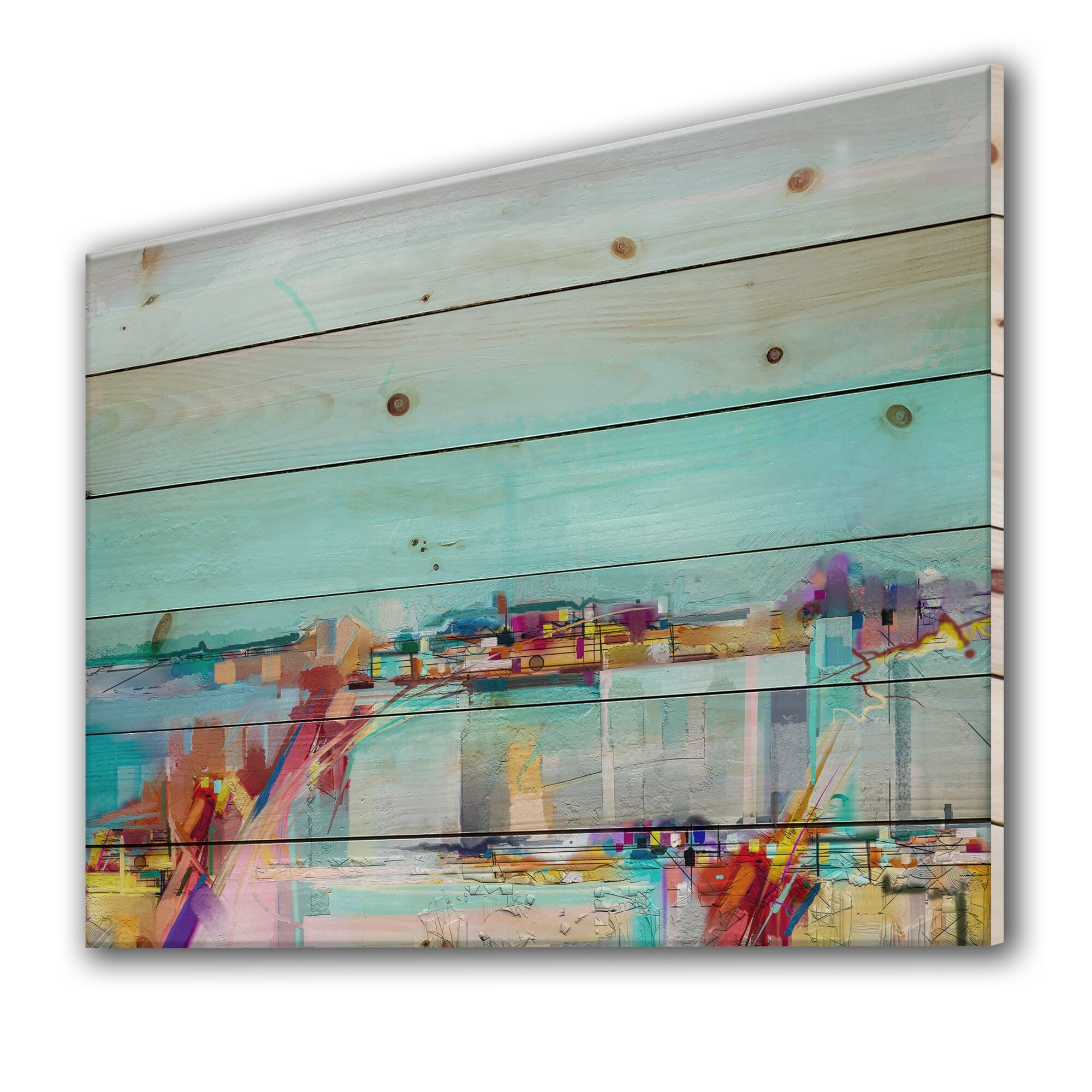 Designart 'Abstract Colorful Seascape IV' Modern Print on Natural Pine Wood