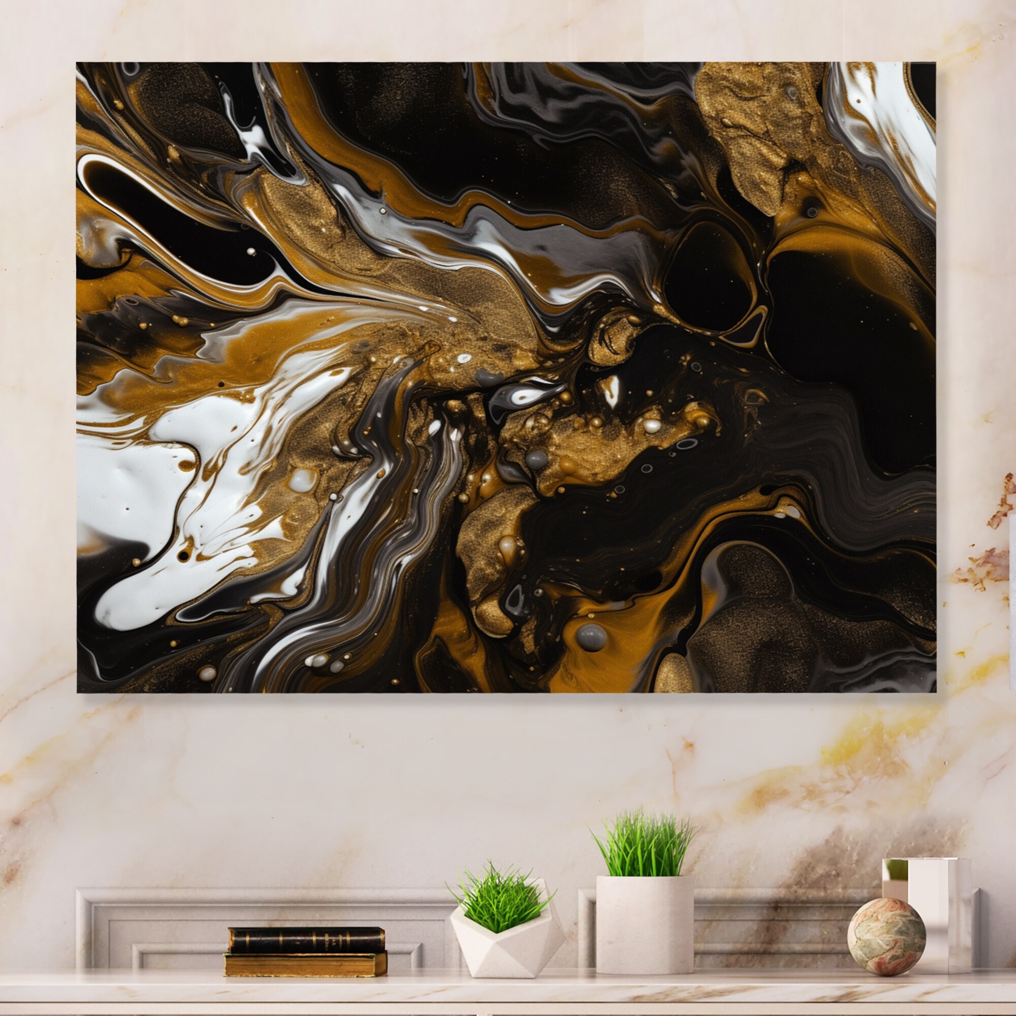 Designart "Black Gold Fusion of Marble III" Abstract Marble Metal Wall Art