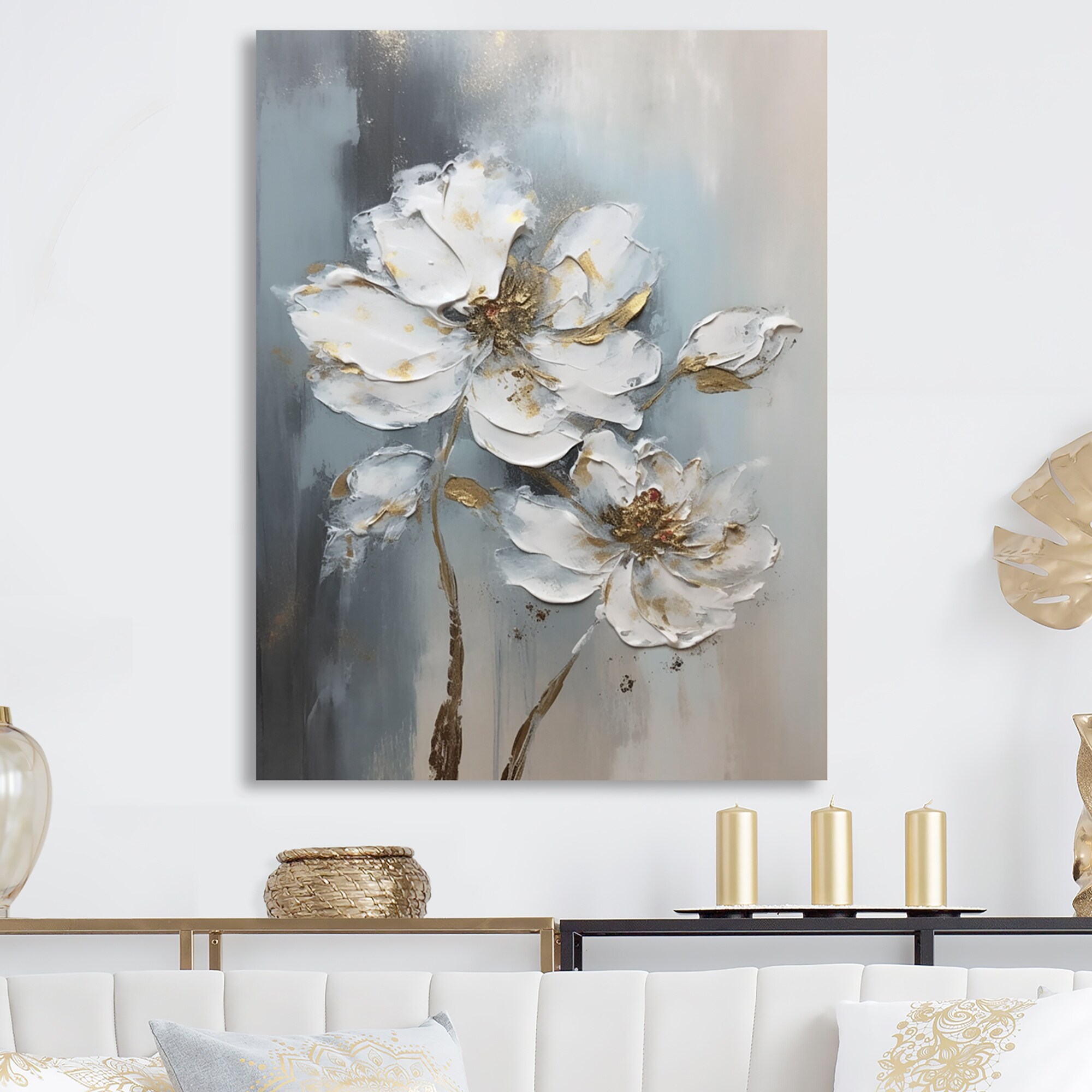 Designart "Melodies Of Daisy White And Gold" Floral Daisy Metal Wall Art